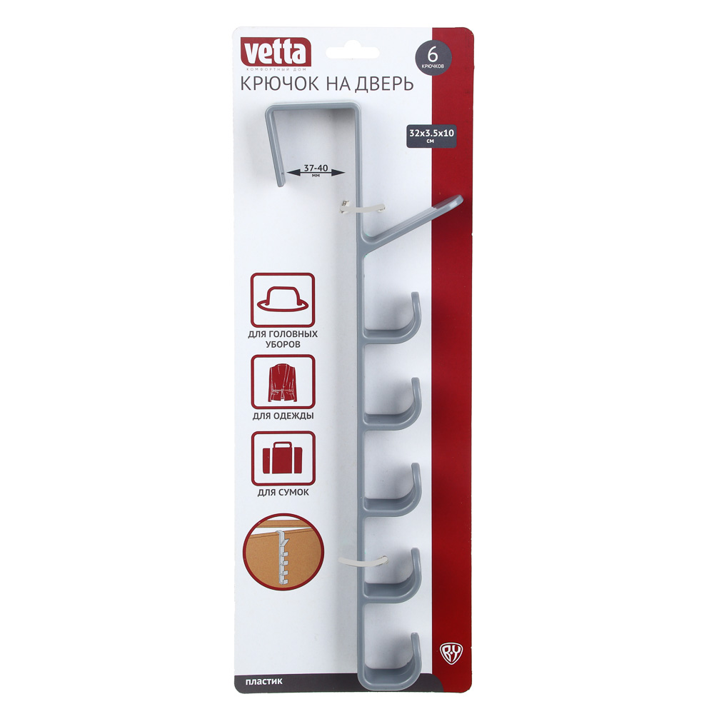 Крючок на дверь накидной VETTA позволит организовать дополнительное место для хранения хозяйственных вещей. Изделие изготовлено из прочного пластика и оснащено 6-тью крючками, на которых можно разместить полотенца, аксессуары или гигиенические принадлежности. Рассчитан на толщину двери 37-40 мм.