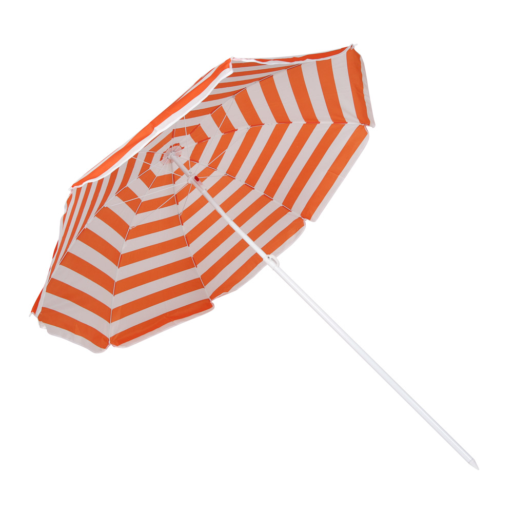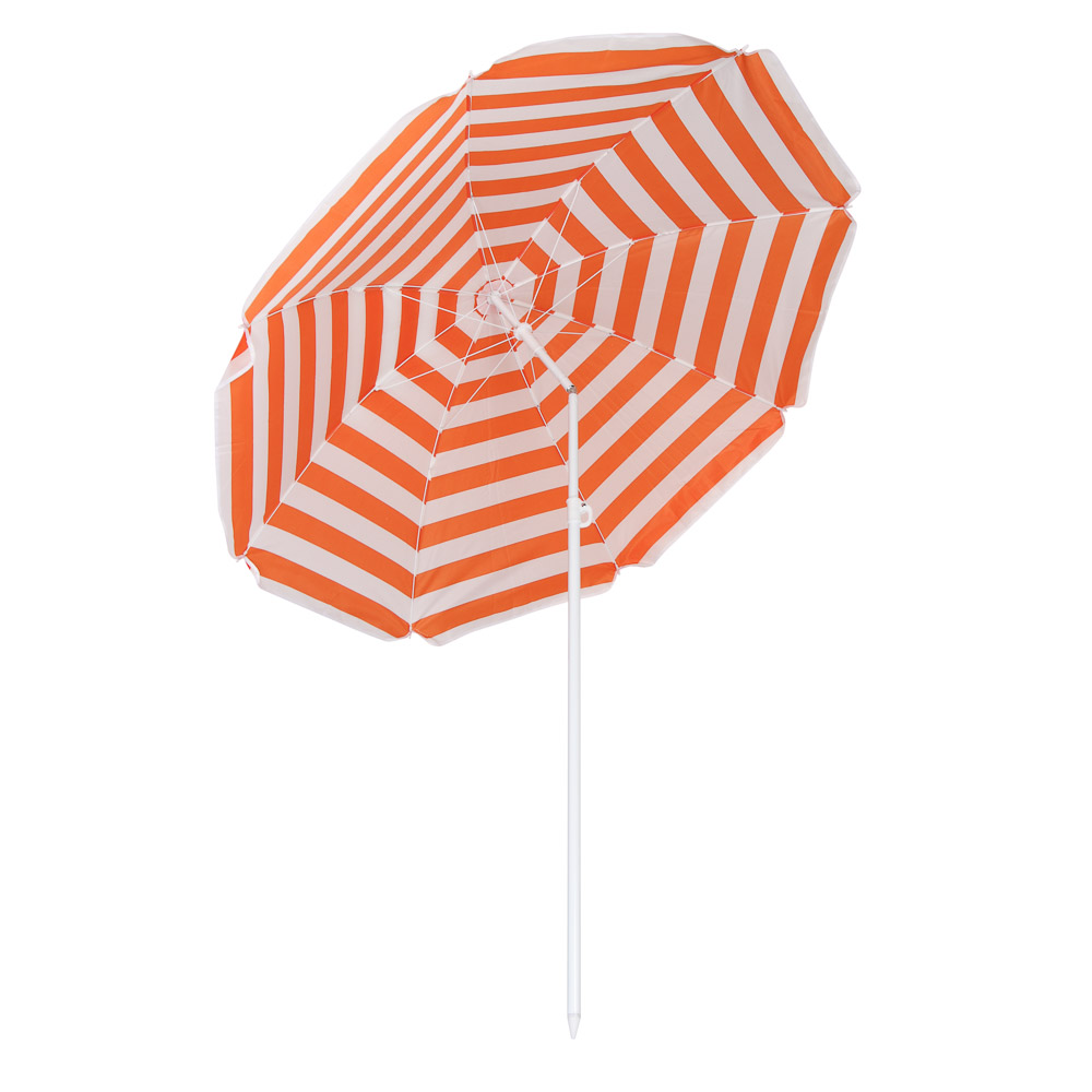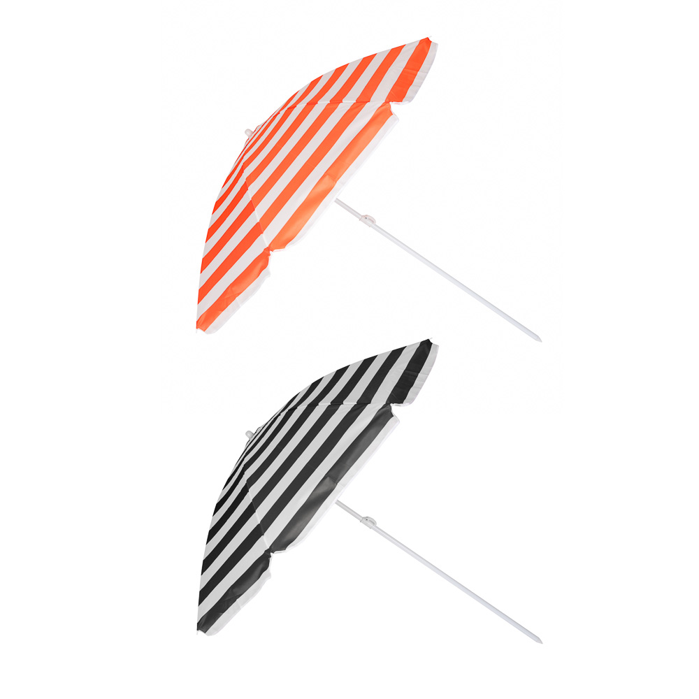 Пляжный зонт высотой 180 см укроет вас от палящего солнца и дождя во время отдыха на природе. Диаметр изделия составляет 160 см. Аксессуар выполнен из высокопрочного полиэстера 210 D. Материал не боится осадков и ультрафиолета. Купить пляжные зонты можно в трех дизайнах. Для удобной транспортировки предусмотрен чехол.