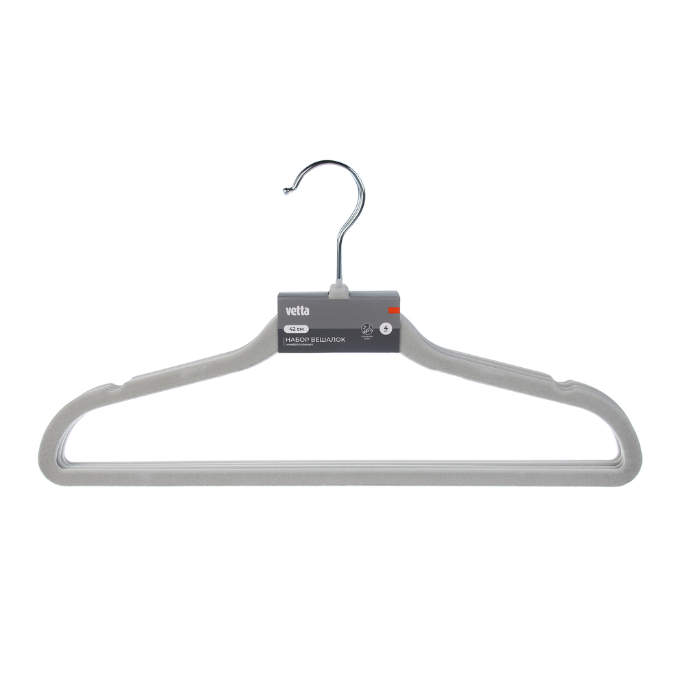 Набор металлических вешалок VETTA с антискользящим покрытием из флока шириной 42 см – это компактные вешалки, которые подходят для хранения любой одежды, включая брюки и юбки. Имеют прочное металлическое основание, не гнутся и не ломаются под тяжестью одежды, а благодаря антискользящему покрытию, не будут соскальзывать и сминаться в процессе хранения. Тонкие и легкие, поэтому не займут много места в гардеробном шкафу при хранении и транспортировке.