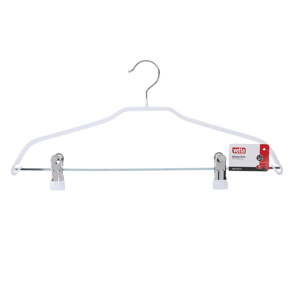 Вешалка VETTA из металла со стальным каркасом и ПВХ-покрытием — это стильное и функциональное решение для хранения одежды. Благодаря клипсам, она надёжно фиксирует плечики с одеждой, предотвращая их скольжение и деформацию. Размер вешалки составляет 40 см, что позволяет удобно разместить рубашки, блузки и трикотаж.