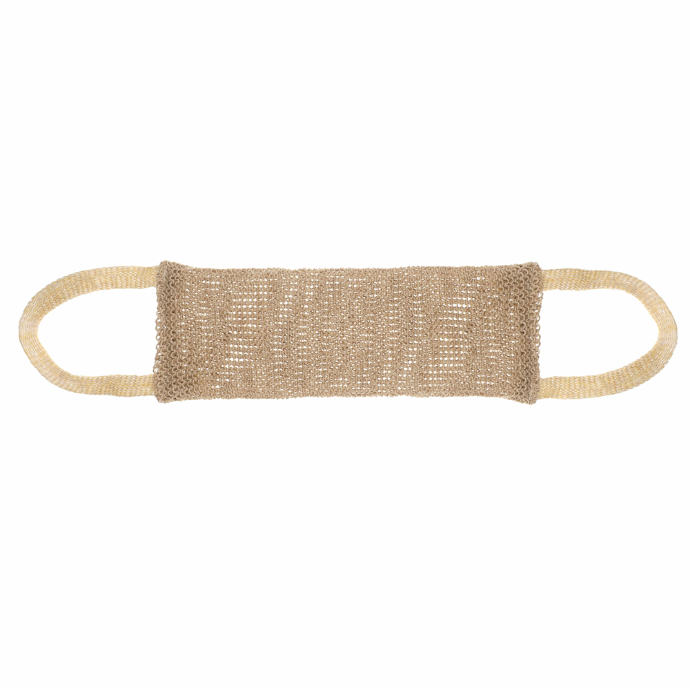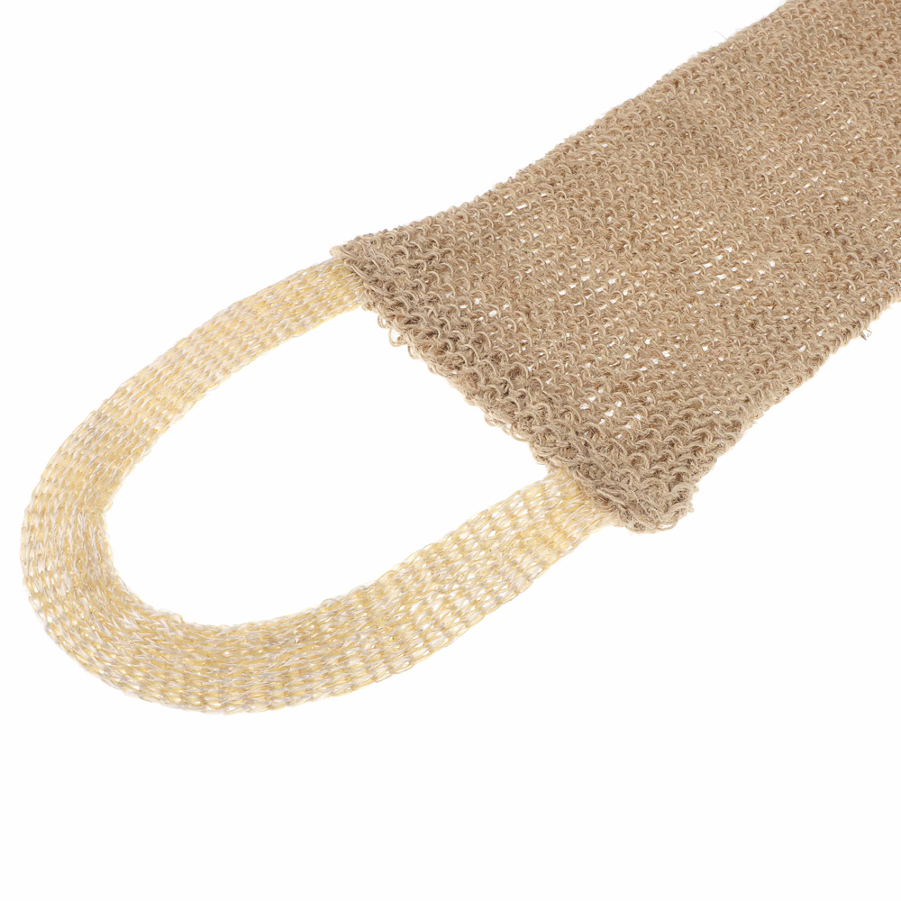 Для ценителей интенсивного массажа и мощного скрабирующего эффекта представлена наша мочалка-лента из 100% натурального джута! Ее удлиненная форма 38х11 см и продуманная конструкция с двумя прочными ручками делают уход за кожей спины, плеч и всей поверхности тела невероятно простым и удобным. Больше не нужно изворачиваться — просто возьмитесь за ручки и проведите мочалкой по телу, как массажным поясом. Джут — это природный и очень жесткий материал, известный своими отшелушивающими и разогревающими свойствами. Такая мочалка обеспечивает глубокое очищение, тщательно удаляя загрязнения и омертвевшие клетки кожи. Она великолепно стимулирует кровообращение и лимфоток, помогая бороться с целлюлитом и даря коже ощущение бодрости и тонуса после первого же применения. Превратите ежедневный душ в действенную SPA-процедуру, которая пробудит ваше тело и зарядит энергией на весь день!