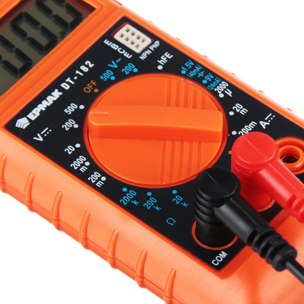 Этот прибор оснащен амперметром, вольтметром и омметром. Он используется для точного измерения этих величин.Особенности:Мультиметр цифровой ( с батареей ): да;Щуп с красным кабелем: да;Щуп с черным кабелем: да;Термоэлектрическая пара типа «К»: нет.