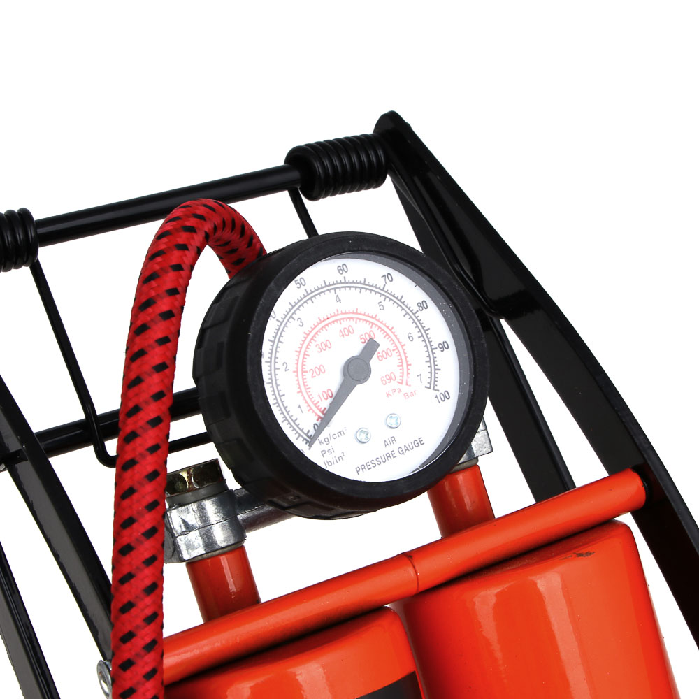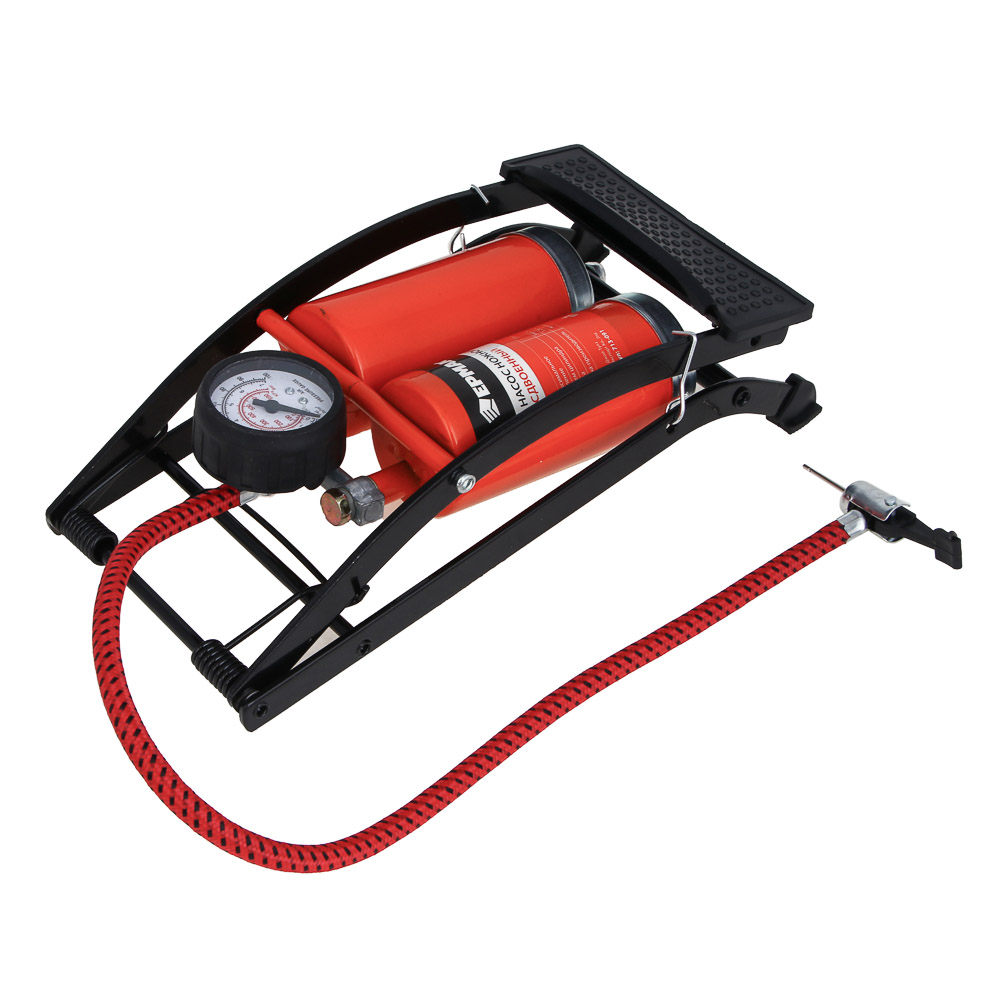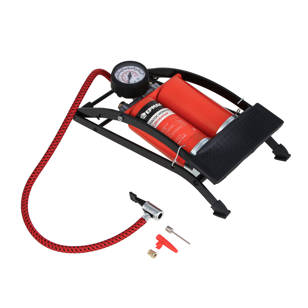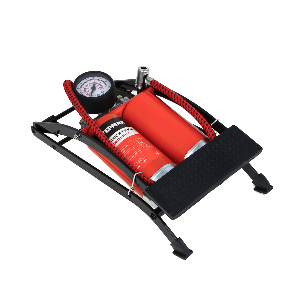 Ножной насос тм ЕРМАК — надежное и практичное устройство для накачивания шин автомобилей, велосипедов, мотоциклов, мячей и других надувных изделий. Сдвоенная конструкция обеспечивает повышенную эффективность работы, позволяя быстрее создавать необходимое давление и снижая усилия при накачке. Насос оснащен встроенным манометром, который позволяет точно контролировать давление в шине или другом объекте, предотвращая перекачку и обеспечивая безопасное использование. Эргономичная конструкция и устойчивое основание делают работу комфортной, а красный корпус обеспечивает хорошую видимость и привлекательный внешний вид.