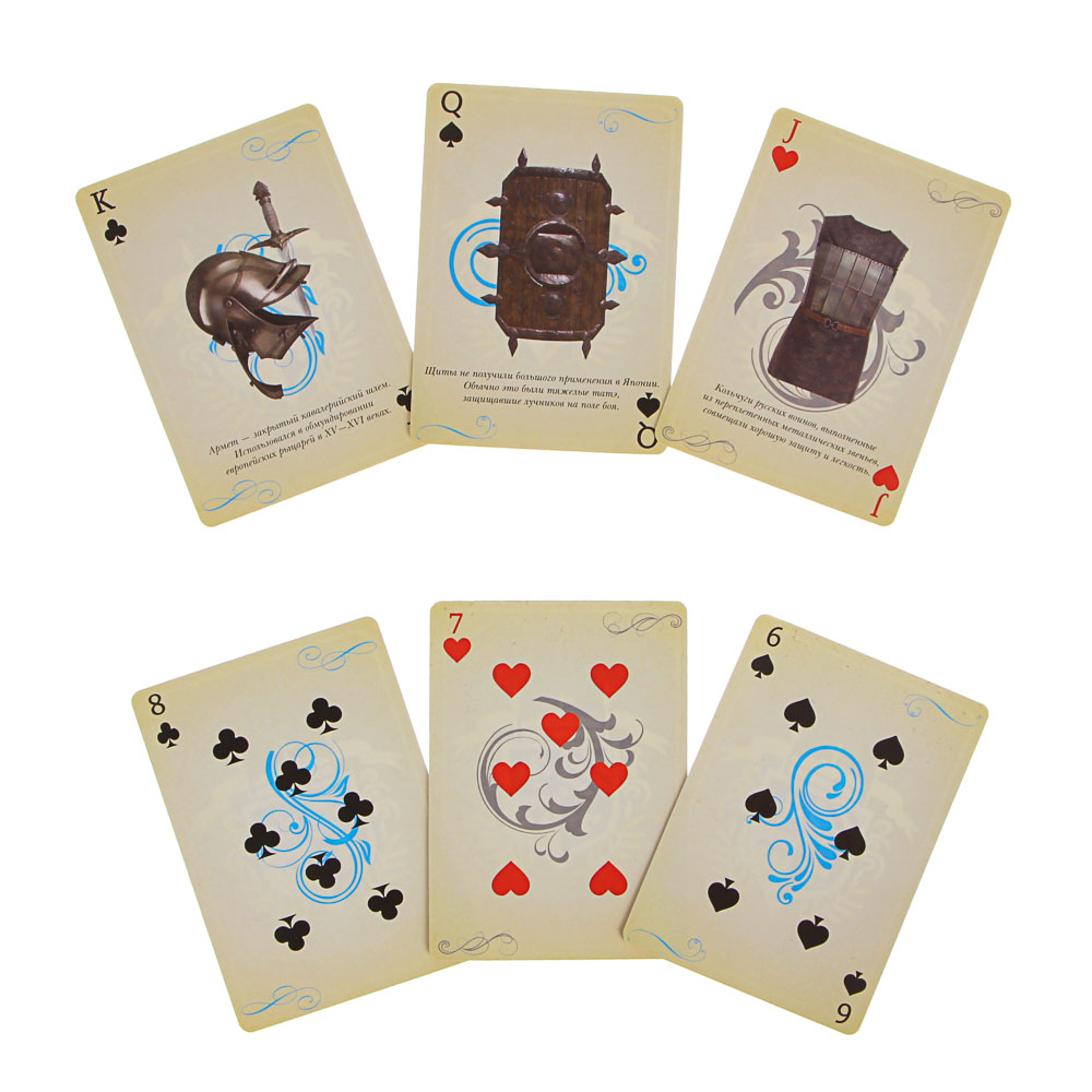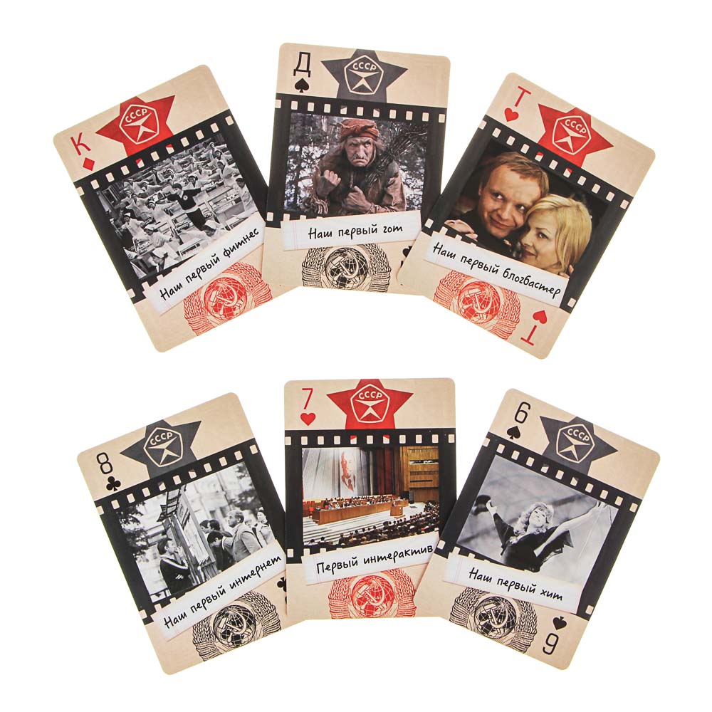 Карты игральные «Наша ностальгия» – это оригинальная сувенирная колода тематических карт, посвященных разным историческим эпохам. Интересные и познавательные цветные иллюстрации нанесены как на лицевой стороне, так и на рубашке каждой карты и сопровождаются коротким текстом. Выполнены из плотного картона. Отличный вариант для коллекционеров. 36 карт в колоде. В серии представлено 3 дизайна: «СССР», «Средневековое оружие», «Автоклуб».