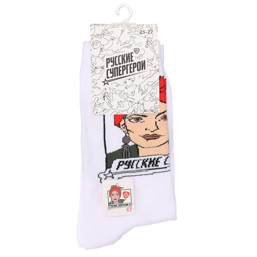Носки BY «Русские Супергерои», размер 25-27 белого цвета с яркими принтами в стиле Супергероев в ассортименте – это отличный выбор на каждый день. Белые носки подходят для прогулок, занятий спортом, активного отдыха, а также для дома. Имеют классическую длину. Оптимальный состав ткани (65% хлопок, 25% полиэстер, 10% спандекс) гарантирует комфорт и износостойкость. Носки прекрасно пропускают воздух и эффективно отводят влагу, идеально облегают ногу без излишнего сдавливания. Не скатываются даже при активных движениях. Хорошо отстирываются и не теряют форму. 5 дизайнов в ассортименте.