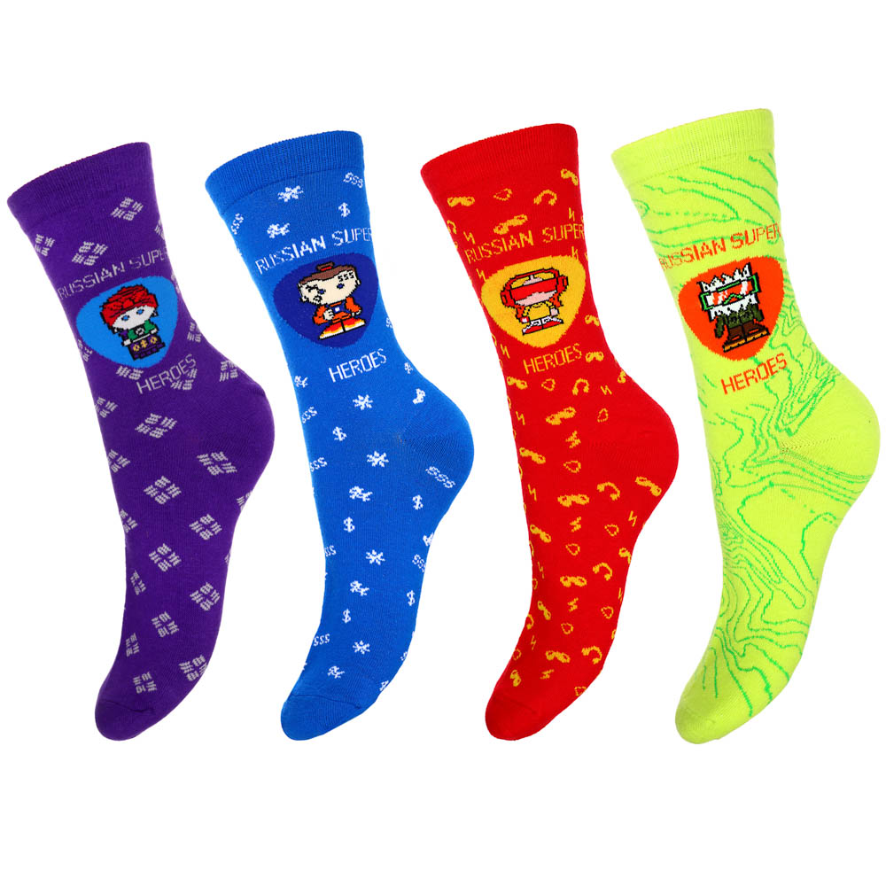 Разноцветные высокие носки BY с принтом «Russian Super Heroes» прекрасно пропускают воздух и впитывают влагу благодаря 85-процентному содержанию хлопка. Небольшое добавление полиэстера и спандекса делает ткань прочной и эластичной. Носки универсальные BY размером 25-29 подходят для повседневной носки и занятий спортом в любое время года. Резинка хорошо фиксирует носок на ноге, не сдавливая и не вызывая дискомфорт в конечностях. 4 ярких дизайна на выбор.