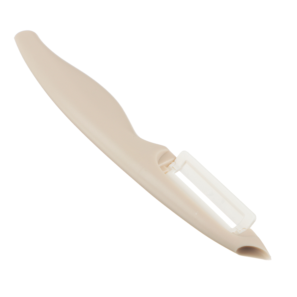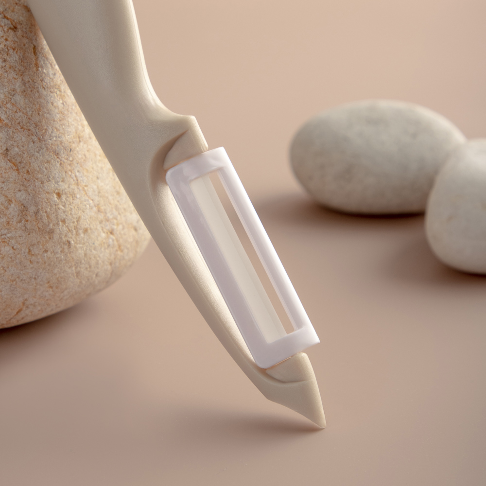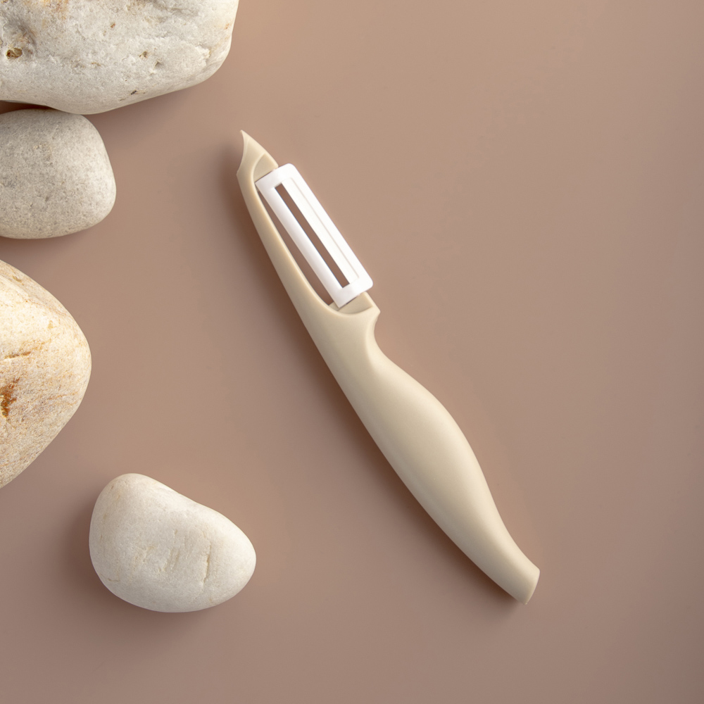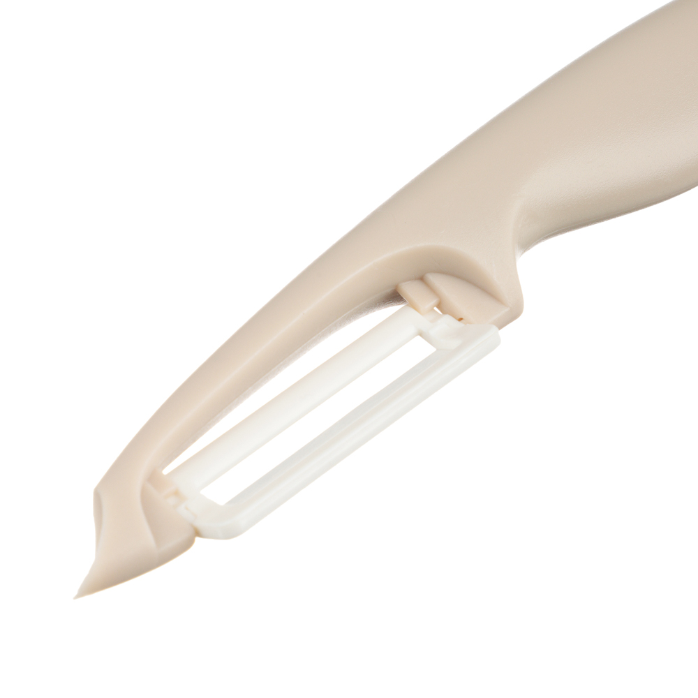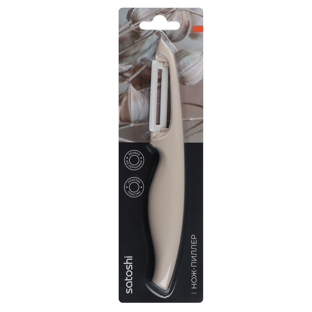 Овощечистка – незаменимая вещь на современной кухне. Овощечистка SATOSHI Дайтани с керамическим вертикальным лезвием имеет эргономичную ручку и удобно лежит в руке. Керамическое лезвие сохраняет остроту в течение длительного времени, а поворотный механизм работы лезвия увеличивает площадь соприкосновения с продуктом, позволяя максимально быстро снять кожицу с овощей и фруктов.