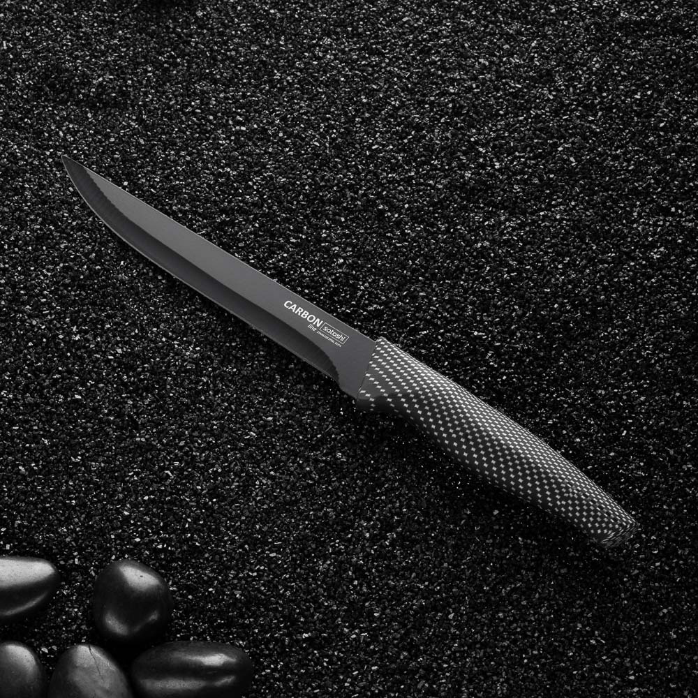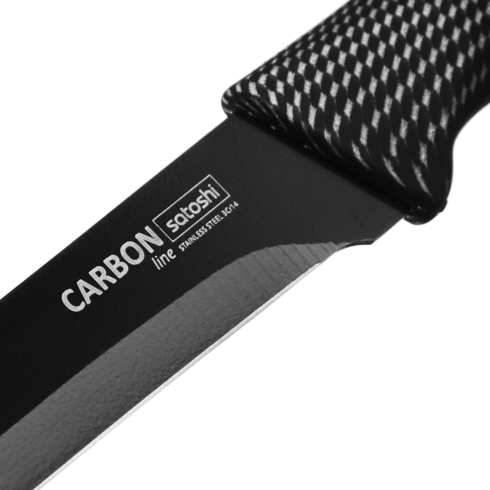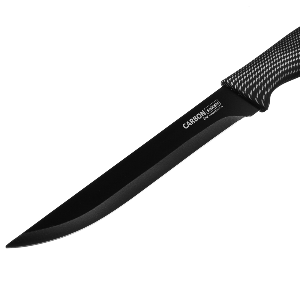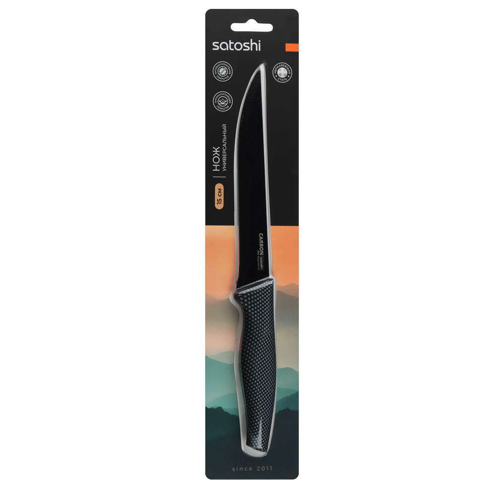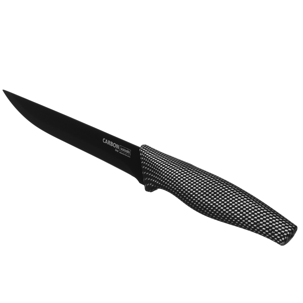 Универсальный кухонный нож SATOSHI Карбон с лезвием 15 см из нержавеющей стали и антиналипающим покрытием идеально подходит для нарезки различных видов продуктов. Рукоятка эргономичной формы обеспечивает удобный и надежный захват, а нескользящий материал предотвращает выскальзывание ножа из руки. Кроме того, лезвие легко чистится и сохраняет свою остроту на протяжении длительного времени. Стильный и функциональный инструмент станет незаменимым помощником на вашей кухне!