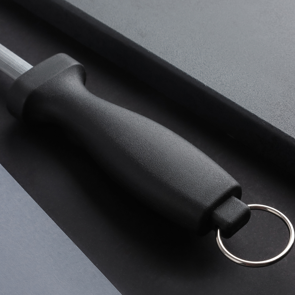 Мусат для заточки ножей позволит всегда вашим ножам оставаться острыми в такой степени, что нарезка тонких ломтиков продуктов никогда не будет проблемой. Мусат 30 см позволит быстро заточить лезвие по принципу «нож об нож». В результате оно станет идеально острым. Инструмент оснащён пластиковой ручкой.