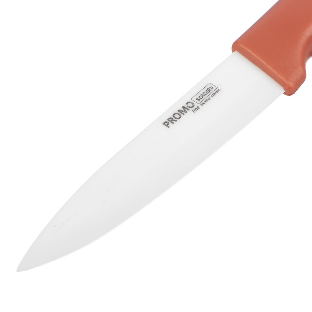 Нож кухонный керамический 10 см SATOSHI Промо удивит вас удобством и точностью нарезки. Керамическое лезвие не нуждается в частой заточке. Материал не вступает в реакцию со щелочами и кислотами, не боится ржавчины и надолго сохраняет опрятный внешний вид. Керамический кухонный нож порадует отличной остротой и качеством работы. Изделие не придает продуктам металлического привкуса и легко затачивается камнем с алмазным напылением. Эргономичная рукоятка удобно ложится в руке и обеспечивает комфортное использование аксессуара.