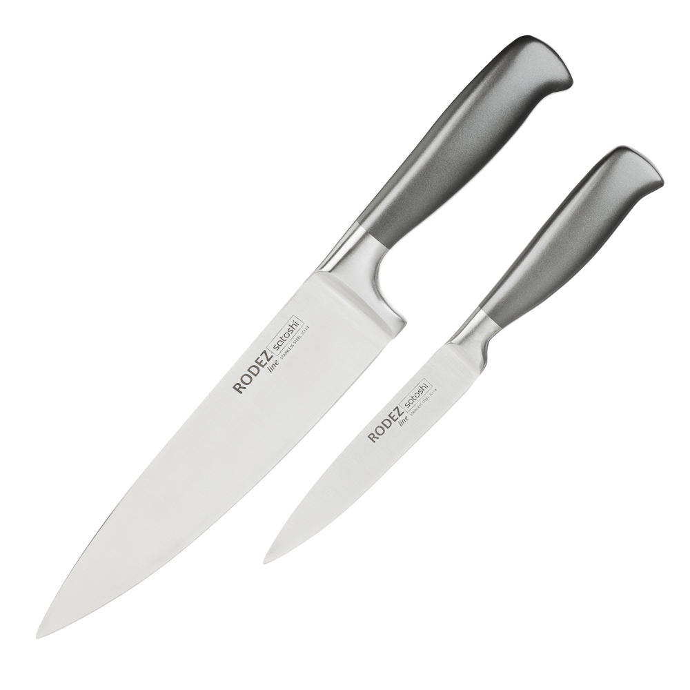 Набор кухонных ножей SATOSHI Родез позволит воплотить все ваши кулинарные фантазии на кухне! Эргономичные ручки обеспечивают комфортное использование ножей для кухни, а лезвия из высококачественной нержавеющей стали заточены идеально остро и гарантируют исключительное качество нарезания. Благодаря высококачественной стали, вы сможете наслаждаться качеством острых лезвий металлического ножа, их высокой устойчивостью к коррозии и долгим сроком службы. Набор из 2 предметов включает в себя: поварской шеф нож с длиной лезвия 20 см и разделочный нож с лезвием 12 см. Изделия можно мыть в посудомоечной машине. Ножи рекомендуется насухо вытирать. Очищайте от кожицы и косточек, нарезайте дольками или кубиками или измельчайте по-своему любые продукты - от мяса до фруктов и овощей!