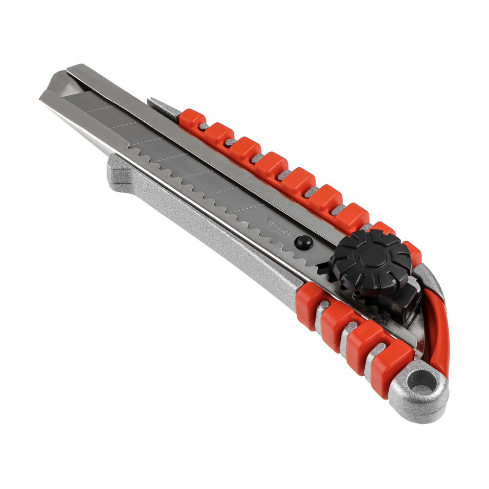 Профессиональный инструмент для точных и интенсивных работ, выполненный из прочного металла с 18-мм сегментированным лезвием. Конструкция с круглым фиксатором обеспечивает надежное крепление лезвия и исключает его смещение при нагрузках. Усиленный металлический корпус повышает долговечность ножа, делая его устойчивым к механическим повреждениям. Сегментированное лезвие позволяет легко обновлять режущую кромку, поддерживая идеальную остроту инструмента.