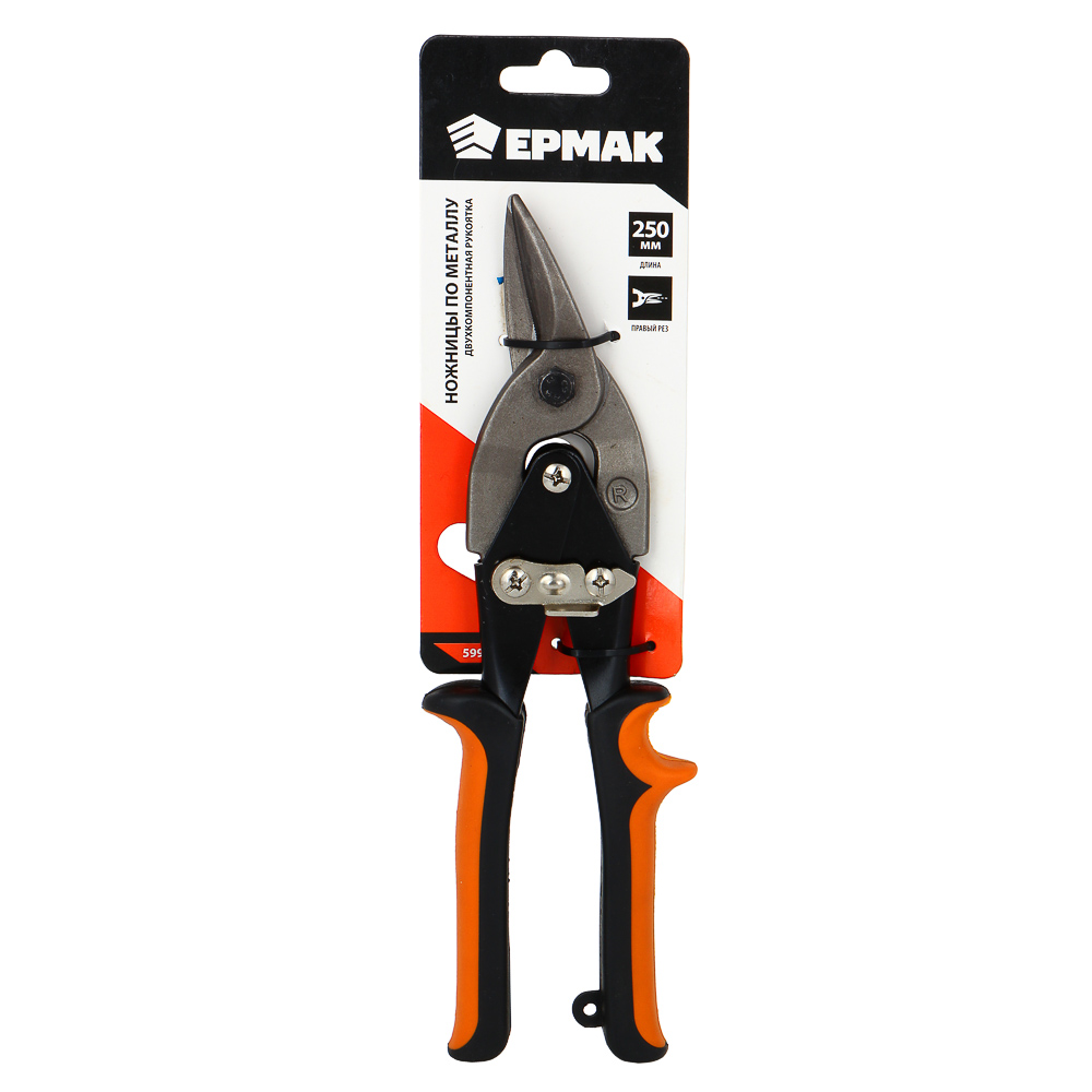 ЕРМАК Ножницы по металлу 250 мм, двухкомпонентная рукоятка, правый