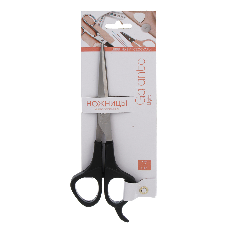 Универсальные ножницы GALANTE Light — простое и надёжное решение для ежедневных задач. Изготовлены из прочной стали с острыми лезвиями, легко справляются с бумагой, картоном, тканью и упаковкой. Длина 17 см — компактный размер, удобный для хранения в пенале, сумке или ящике. Ручки из прочного пластика имеют эргономичную форму и обеспечивают комфортный захват. Выступ на ручке обеспечивает надёжную опору большому пальцу, снижает усталость и повышает точность реза. Легкие, прочные и универсальные: идеальны для школы, офиса, дома или путешествий.