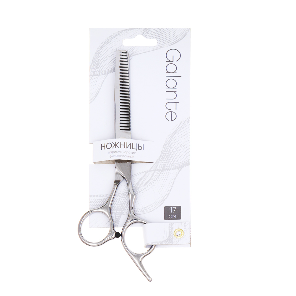 Филировочные парикмахерские ножницы 17 см от GALANTE предназначены для прореживания волос. Изготовлены из качественного металла, полированное покрытие, идеальный скользящий срез, наличие регулировочного винта. Стильный дизайн и специально-разработанная удобная форма делают их применение простым и комфортным процессом. При длительной работе с ними не вызывают чувства дискомфорта и усталости, так как нагрузка распределяется правильно и равномерно. Данная модель оснащена простой винтовой группой, обеспечивающей мягкий ход пластин.