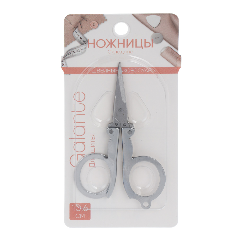 Ножницы GALANTE складные для шитья представляют собой компактный и удобный инструмент для любителей рукоделия и профессиональных швей. Они изготовлены из прочного металла, что обеспечивает долговечность и точное срезание тканей.Основные преимущества:• Длина ножниц: 10,6 см, что делает их идеальными для мелких и детальных работ.• Складной механизм позволяет легко и безопасно хранить ножницы, что особенно удобно в поездках или при хранении дома.• Эргономичные ручки обеспечивают комфорт при использовании и точное управление ножницами.Ножницы складные для шитья GALANTE — отличный выбор для тех, кто ценит качество и функциональность.