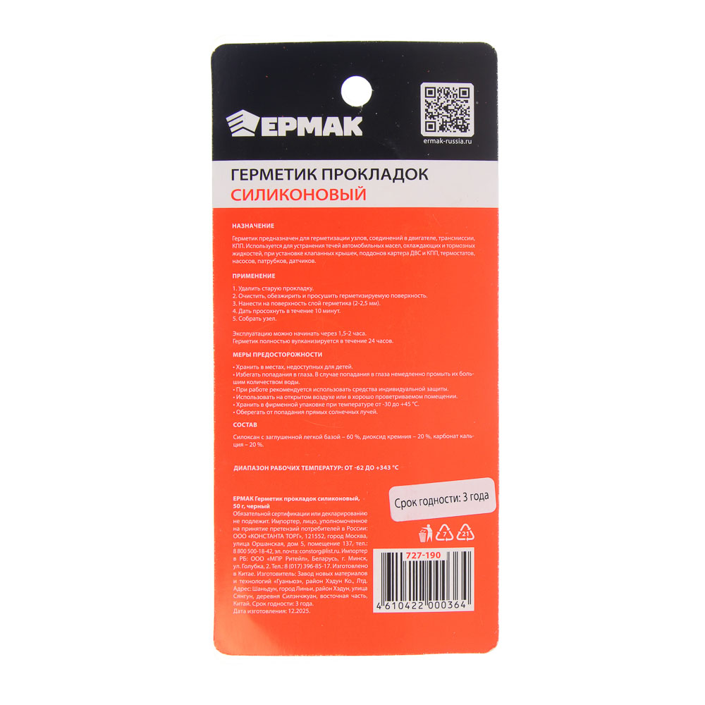 ERMAK представляет профессиональный силиконовый герметик для прокладок, который станет незаменимым помощником в ремонте и обслуживании автомобильного двигателя. Благодаря своей уникальной формуле на основе силикона, этот универсальный состав надежно герметизирует все типы соединений и узлов, обеспечивая длительную и надежную защиту от протечек. Черный цвет герметика идеально маскирует места нанесения, а удобная упаковка в 50 грамм позволяет точно дозировать материал при работе. Продукт прекрасно подходит как для профессионального использования в автомастерских, так и для самостоятельного ремонта в бытовых условиях.