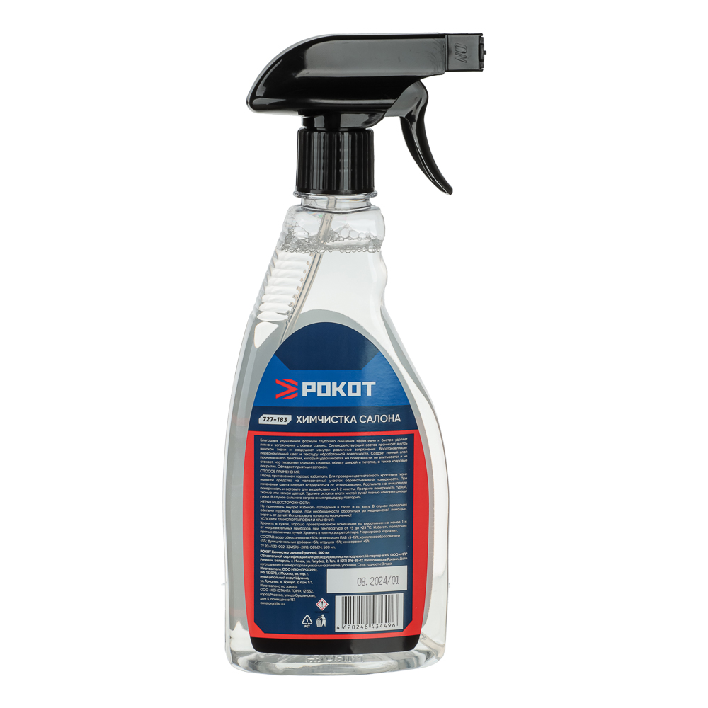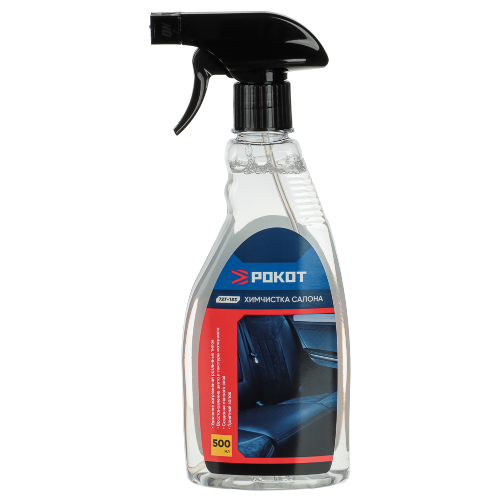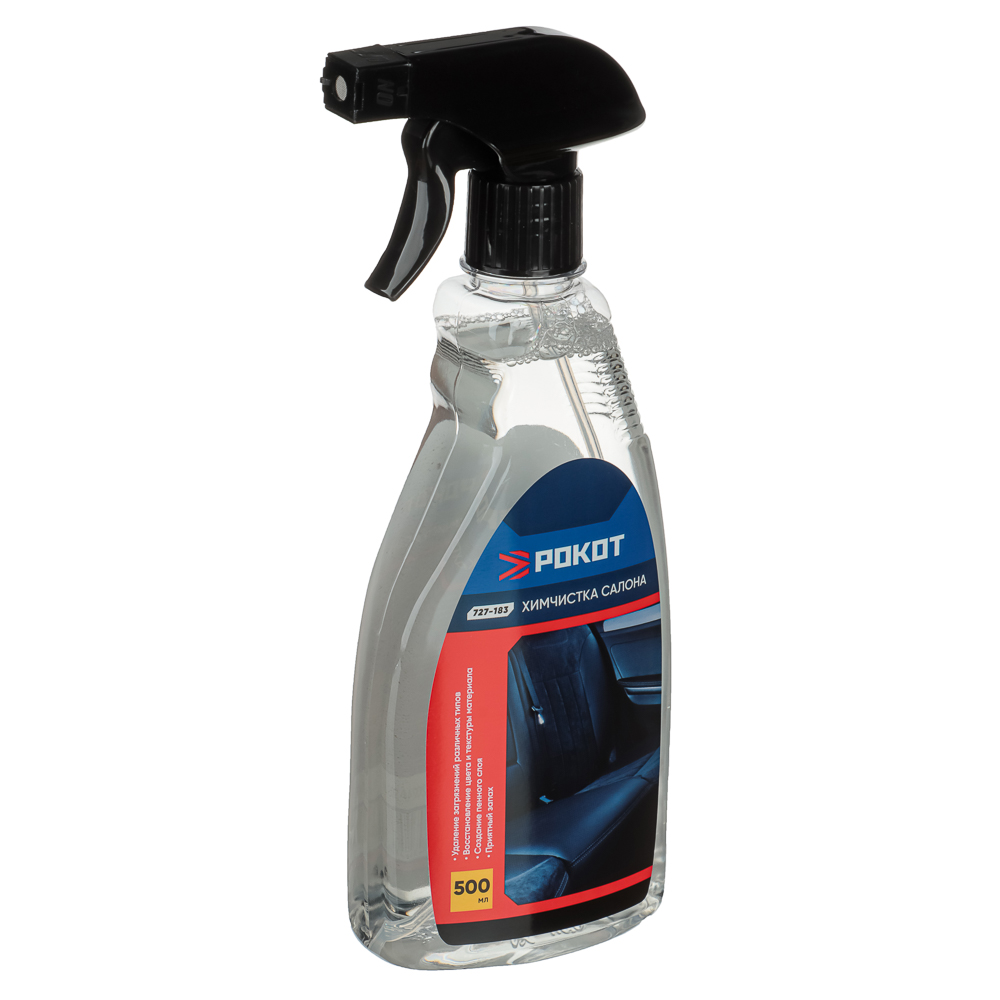 Химчистка салона от бренда Рокот в объеме 500 мл эффективно и быстро удаляет пятна с обивки сало-на. Сильнодействующий состав проникает внутрь волокон ткани и разрушает изнутри любые загрязнения. Восстанавливает первоначальный цвет и текстуру обработанной поверхности. Создает пенный слой проникающего действия, который удерживается на поверхности, не впитывается и не стекает, что позволяет очищать сиденья, обивку дверей и потолка, а также ковровые покрытия.