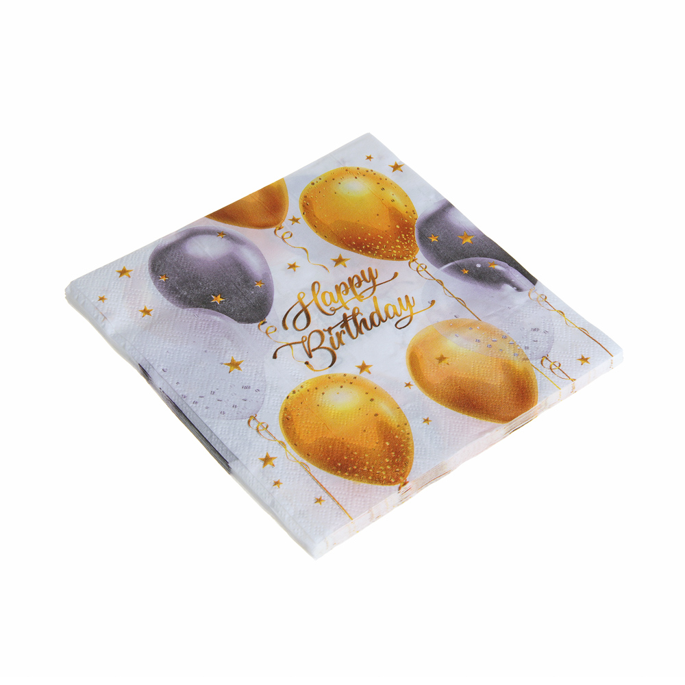 Интересным и самодостаточным элементом вашего праздничного стола станут яркие и красочные бумажные салфетки «Happy birthday!». Экологически чистые, салфетки изготовлены из бумаги. Прекрасное решение для праздничной сервировки стола. Салфетки бумажные найдут применение на кухне, на предприятиях общественного питания: закусочных, столовых, кафе, ресторанах, а также для банкетов и фуршетов.Размер 33x33 см.