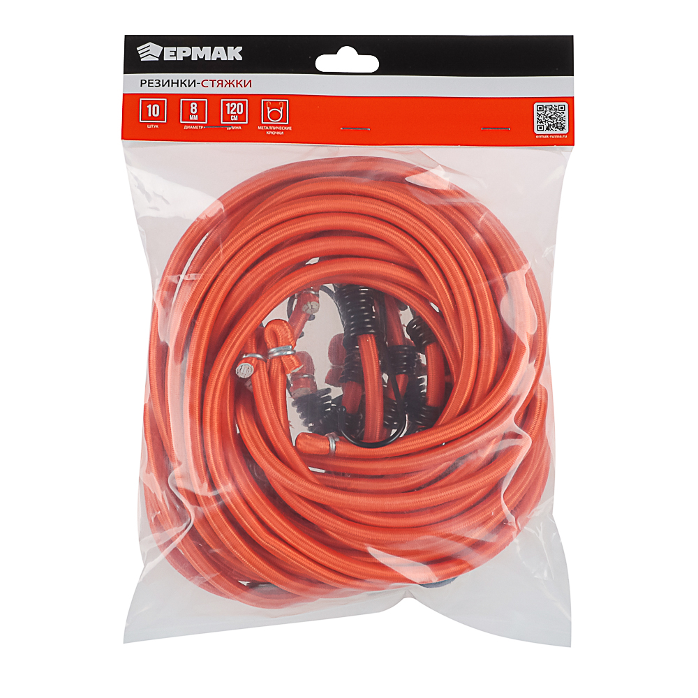 Резинки-стяжки предназначены для крепления и перевозки груза. В состав набора входят 10 резинок длиной 120 см и диаметром 8 мм. Фиксация резинок производится с помощью металлических крючков. Длина резинок идеально подойдет для эксплуатации набора в салоне легковых автомобилей или для малогабаритной техники.