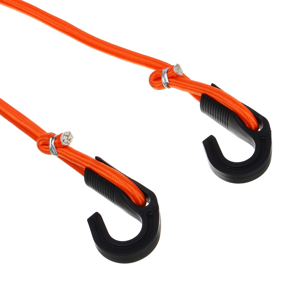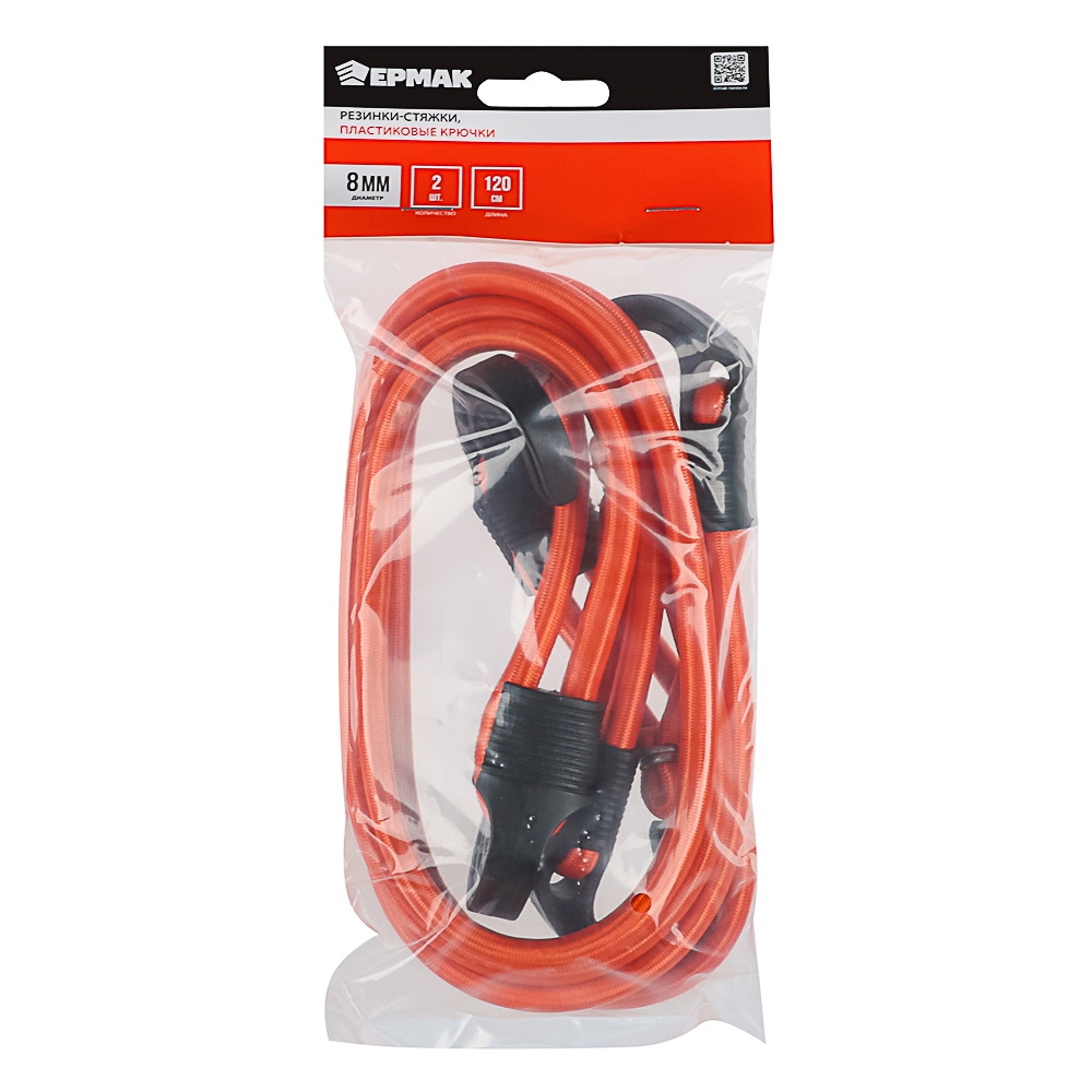 Резинки-стяжки предназначены для крепления и перевозки груза. В состав набора входят 2 резинки длиной 120 см и диаметром 8 мм. Фиксация резинок производится с помощью металлических крючков. Длина резинок идеально подойдет для эксплуатации набора в салоне легковых автомобилей или для малогабаритной техники.
