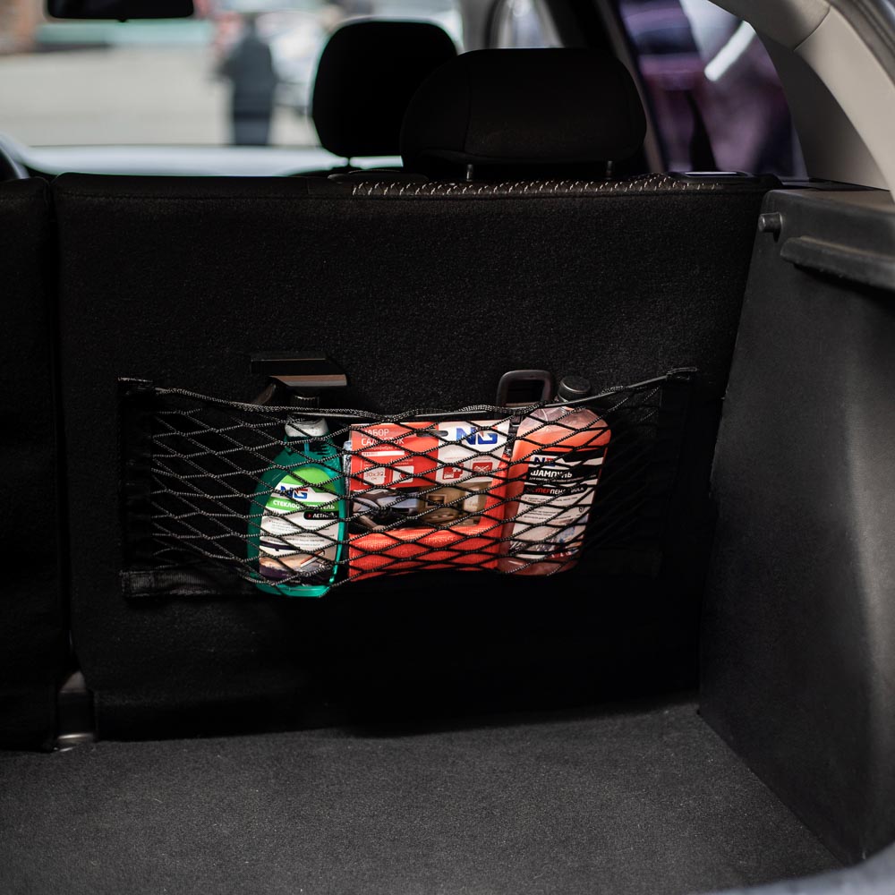 Сетка крепления груза в багажник – это удобный карман размером 25х55 см, предназначенный для хранения и транспортировки некрупных вещей. Идеален для принадлежностей по уходу за авто: салфеток, моющих средств, скребка. Удобный органайзер позволяет разместить необходимые мелочи так, чтобы они не катались по багажнику и не мешали. Прочная полипропиленовая сетка крепится на надежные липучки, а ее монтаж займет всего несколько секунд.