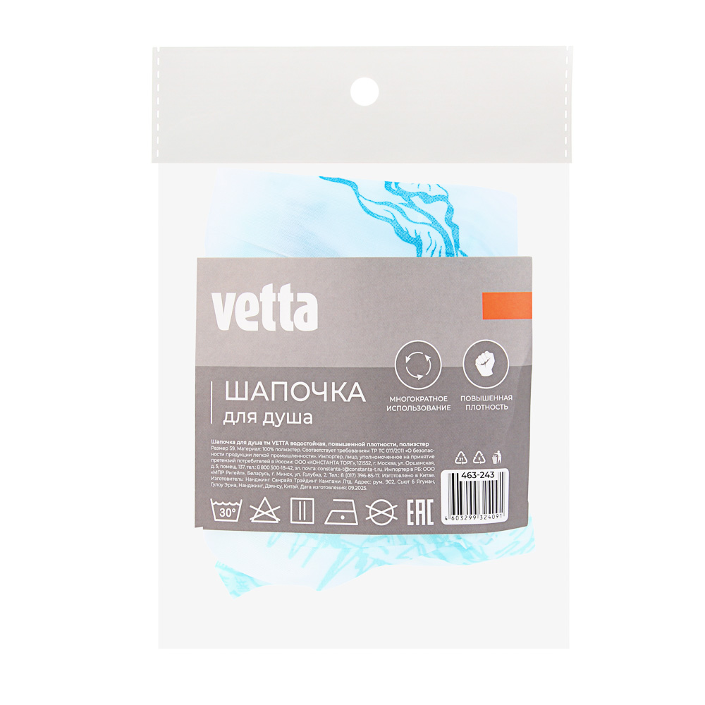 Собираетесь принять душ, но не хотите мочить волосы? Представляем решение — шапочка для душа Vetta. Прекрасная помощница не только во время водных, но и у уходовых процедур. Если регулярно делаете питательные и восстанавливающие маски, без шапочки не обойтись. И эффективность средства повысите и одежду от загрязнений защитите.