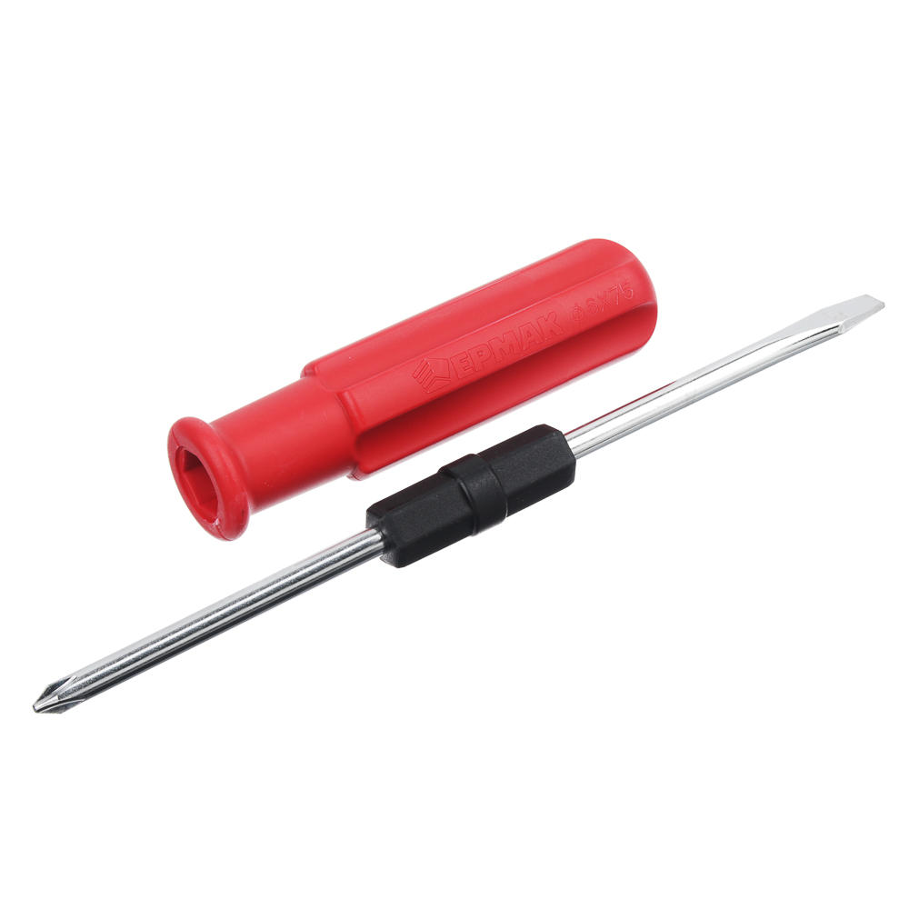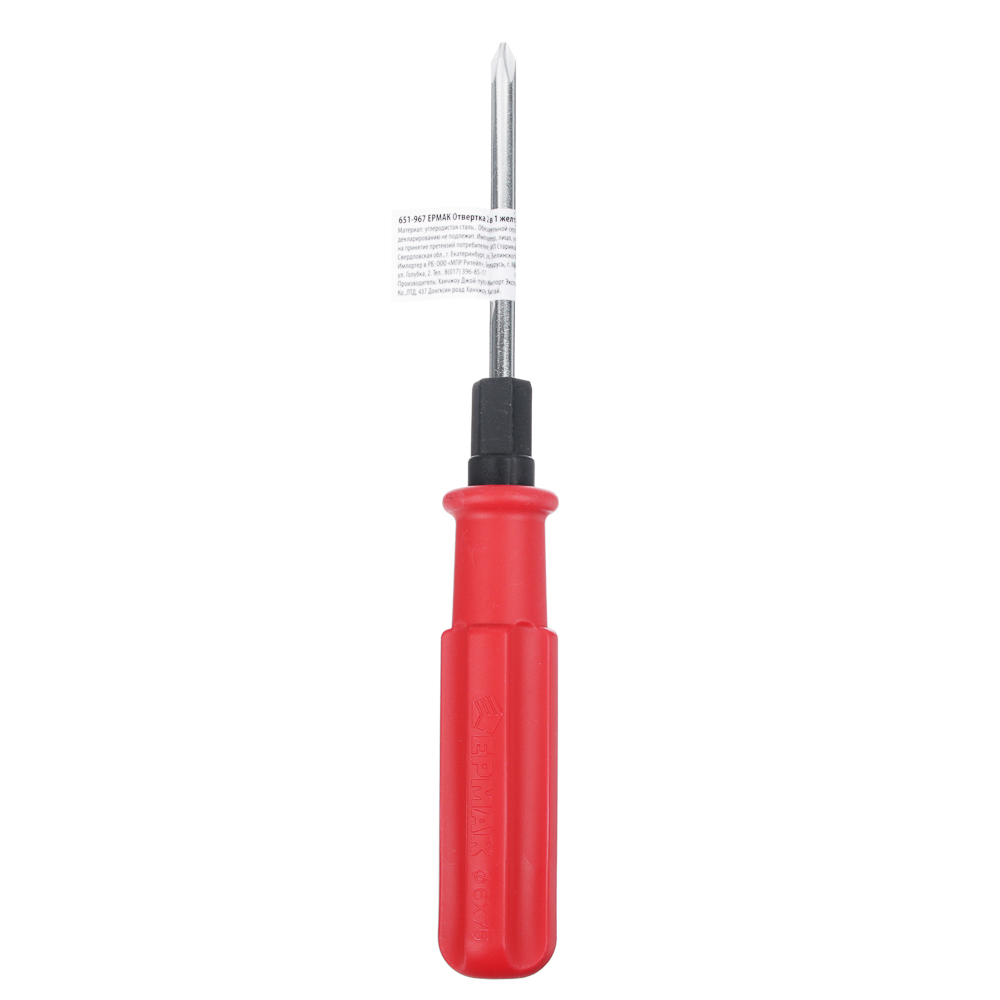 Ищете универсальную отвертку? Отвертка ЕРМАК 2 в 1 с металлическим фиксатором – это комбинированный инструмент с прямым шлицем на одном конце и с крестообразным – на другой. Теперь оба инструмента всегда будут под рукой. Отвертка выполнена из износостойкой углеродистой стали, что гарантирует прочность и сохранность при работе с крепежными изделиями.