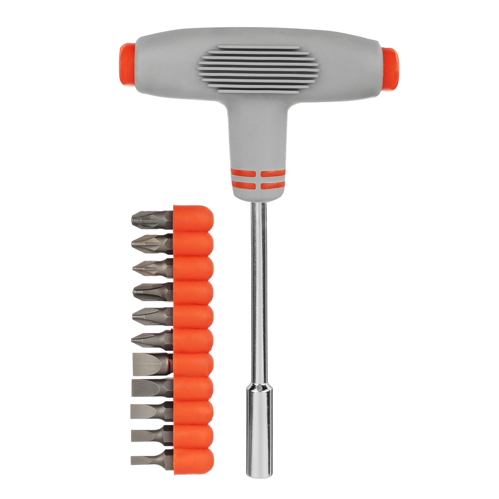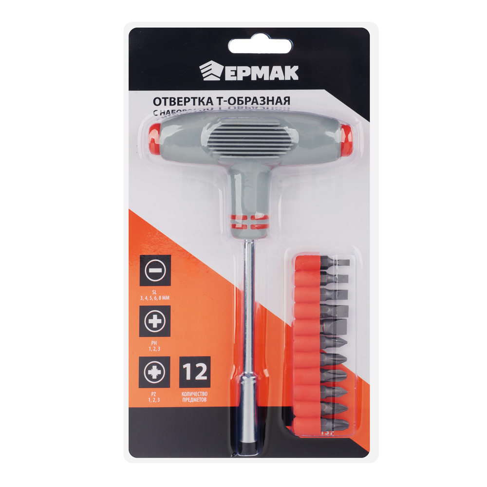 ЕРМАК Отвертка,гибкий стержнень,адаптер1/4,насадки25мм:SL5,SL6,SL7,PH1,PH2,PH3,PZ1,PZ2,T15,T20,сталь