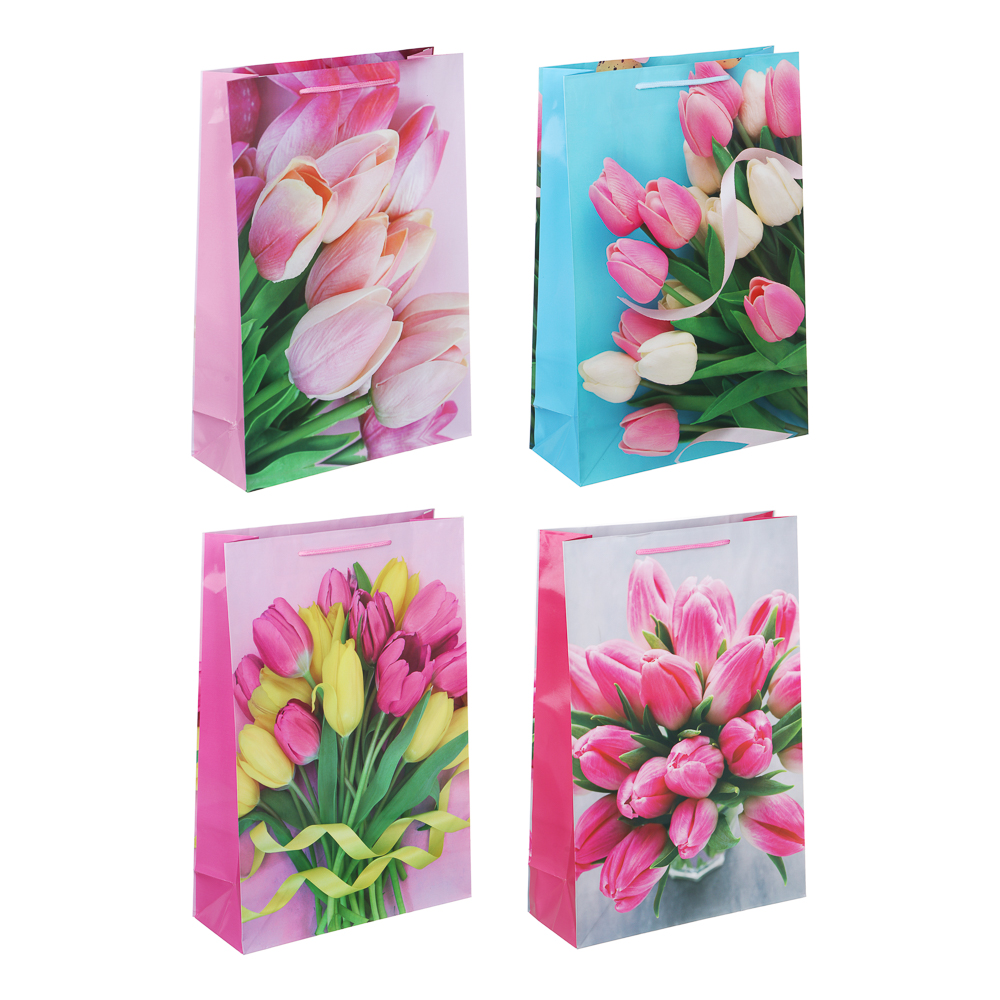 Качественный бумажный подарочный пакет с весенними цветами – это идеальное оформление для вашего подарка к 8 марта, Дню рождения или другому празднику! Размеры пакета составляют 26x38x10 см, благодаря чему он подходит для хранения небольших подарков, таких как косметика, аксессуары или сладости. Качественные и яркие материалы гарантируют долговечность и сохранность вашего подарка. Весенний дизайн с нежными тюльпанами создает атмосферу свежести и пробуждения, делая этот пакет по-настоящему особенным.