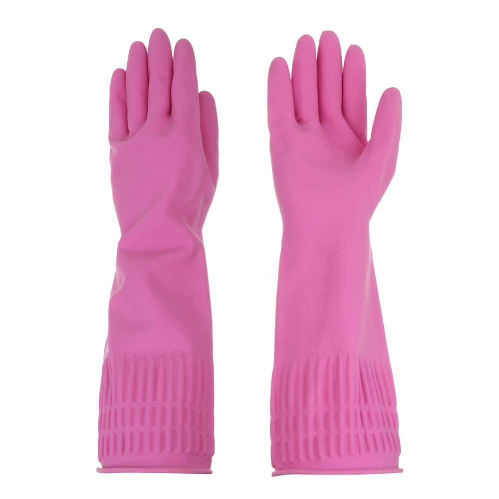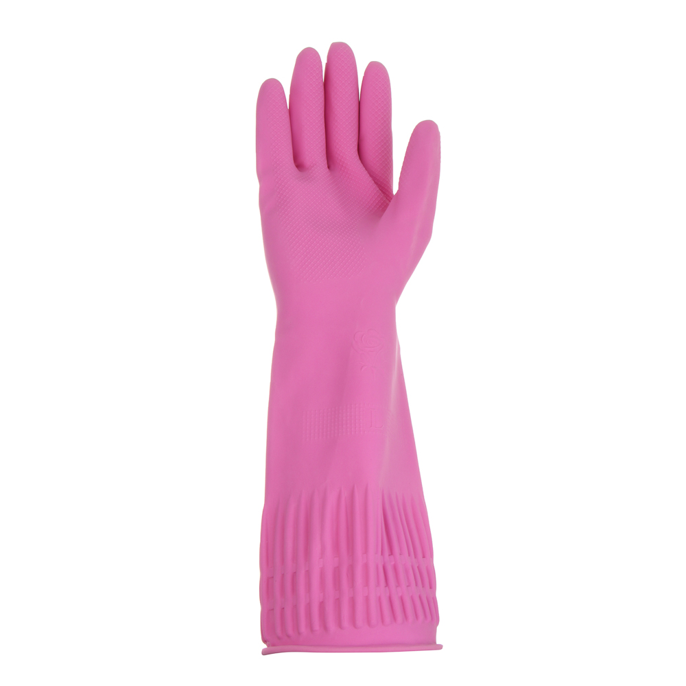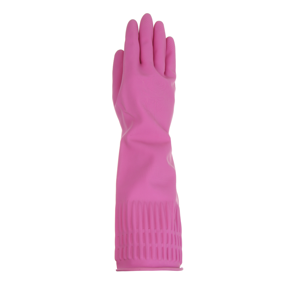Перчатки с манжетой VETTA из прочного латекса предназначены для надёжной защиты рук при выполнении бытовых и хозяйственных работ. Удлинённая манжета длиной 38 см обеспечивает дополнительную защиту запястий и предплечий от воды и моющих средств. Эластичный материал плотно облегает руку, создавая комфорт и удобство при использовании. Перчатки хорошо устойчивы к влаге и загрязнениям, подходят для многоразового применения, а нежный розовый цвет придаёт им аккуратный и привлекательный внешний вид.