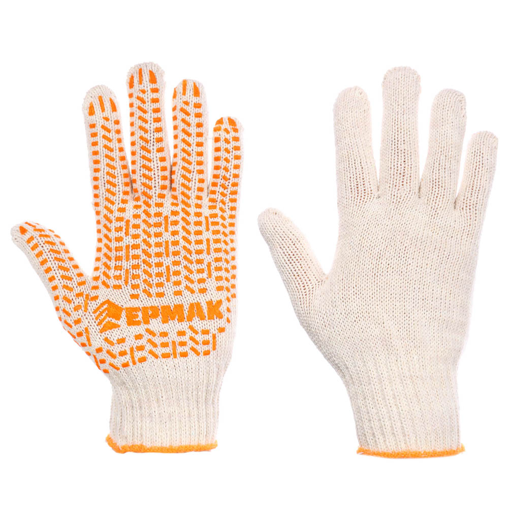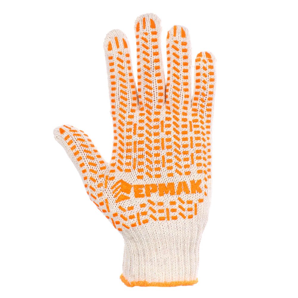 ЕРМАК Перчатки вязаные ЛЮКС х/б с ПВХ напылением, 5 нитей, белые, 62гр, 24см, подвес