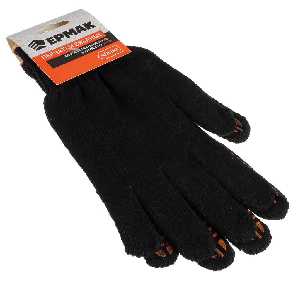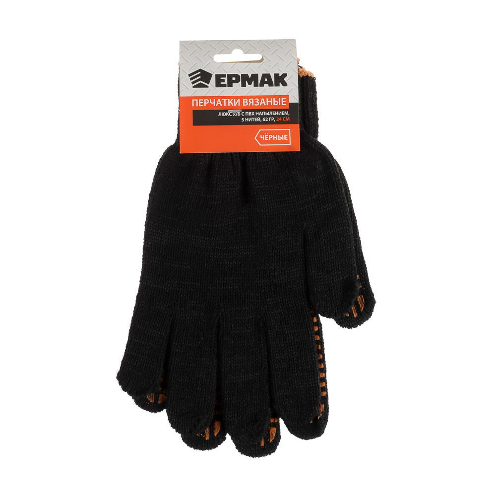 ЕРМАК Перчатки вязаные ЛЮКС х/б с ПВХ напылением, 5 нитей, белые, 62гр, 24см, подвес