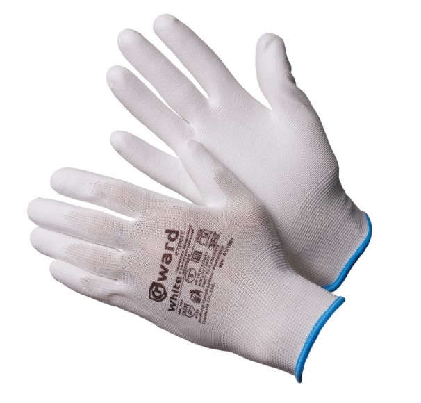Нейлоновые перчатки белого цвета, покрытые полиуретаном белого цвета. Бесшовная основа 13го класса вязки прекрасно вентилируется и не оставляет ворсинок. Универсальны, применяются для любых механических работ. Тонкое полиуретановое покрытие одновременно очень прочное и чувствительное. Анатомическая форма перчатки снижает усталость рук при работе. Высокие показатели к истирательным и разрывным нагрузкам.