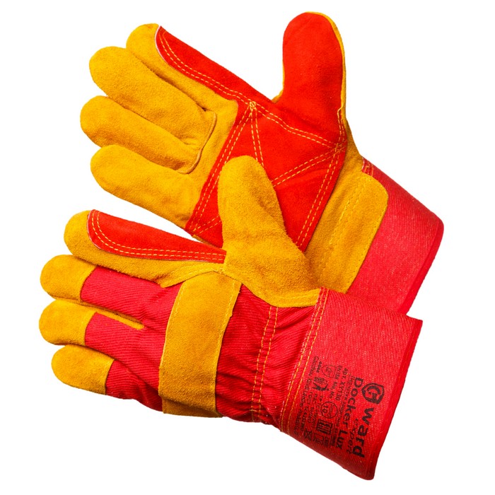 Комбинированные перчатки. Перчатки сшиты из высококачественного спилка КРС оранжевого цвета и более плотной ткани красного цвета. Дополнительные спилковые накладки из спилка красного цвета на ладони, а так же большом и указательных пальцах расширяют возможности использования данных перчаток для работ с более высокой истирательной и разрывной нагрузкой. Дополнительные накладки пришиваются к перчатке двойными усиленными швами. Манжет в виде защитной краги. В данной модели перчаток использован жесткий прорезиненный манжет-крага, который более эффективно защищает запястья и вены от нежелательных царапин, порезов, ударов и т.д. Дополнительные накладки в районе ногтевых пластин и костяшек тыльной стороны ладони защищают эти места от травм. Толщина спилка для данной модели перчаток 1,3-1,5 мм. В наших перчатках используется только спилок высшего сорта. Мягкий, плотный, качественный, равномерно прокрашенный. Для более комфортной носки в перчатках используется подклад из мягкой ткани.