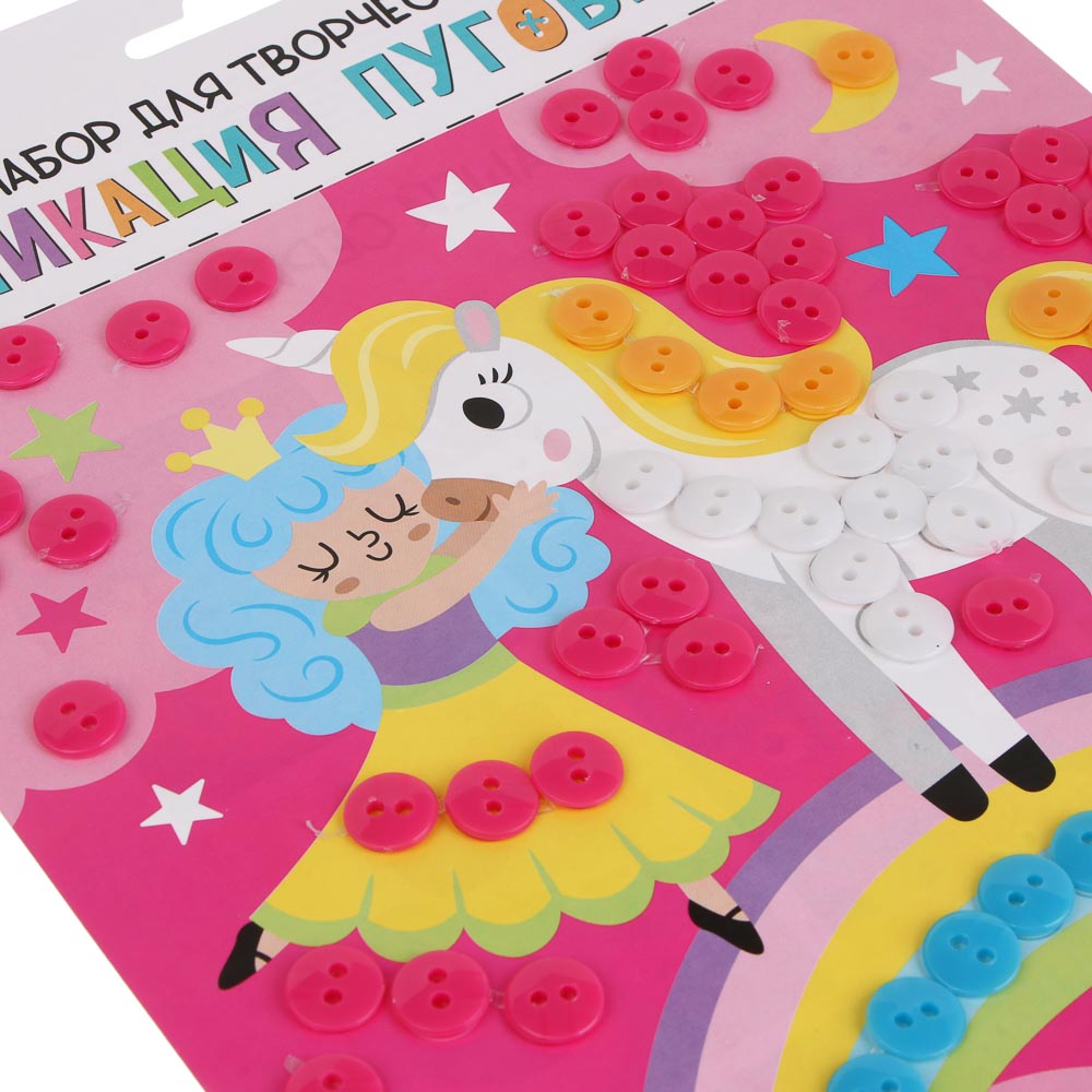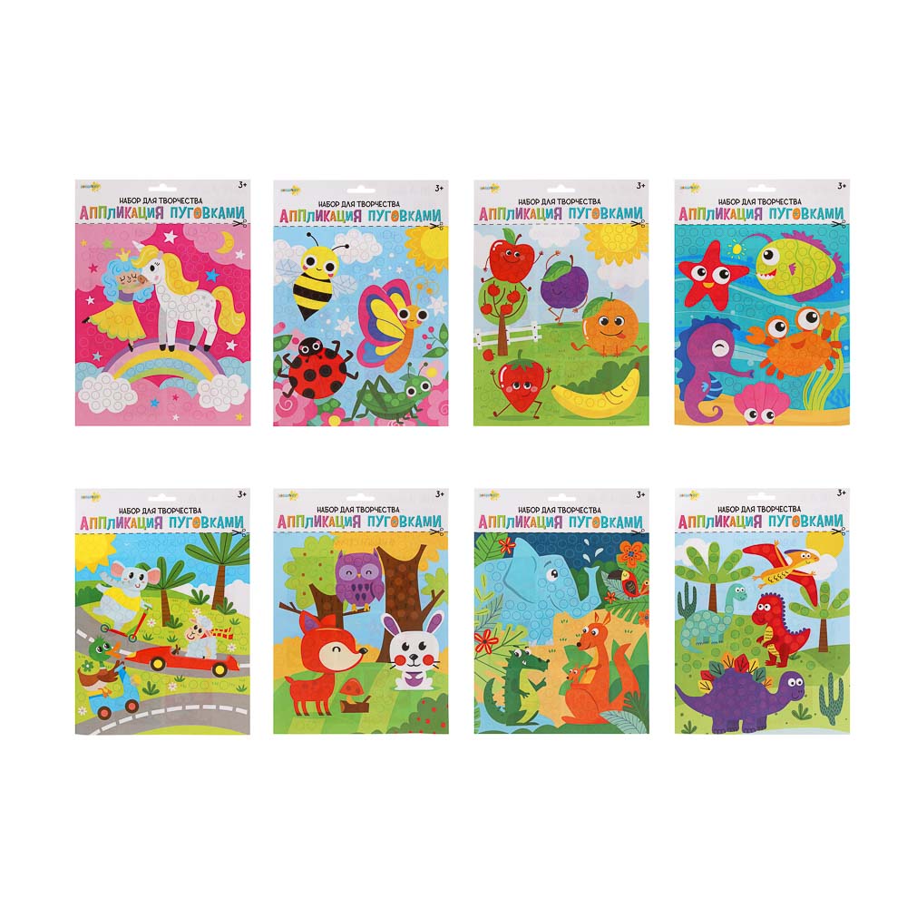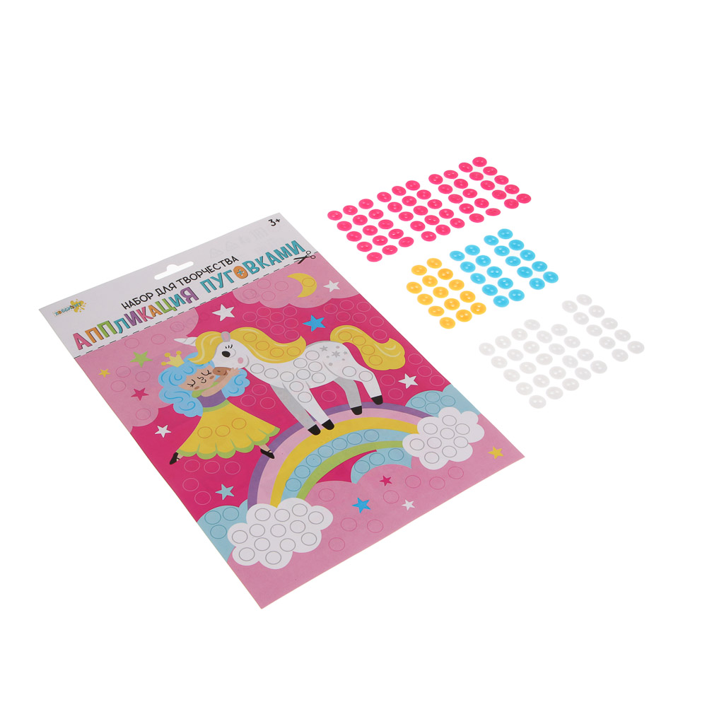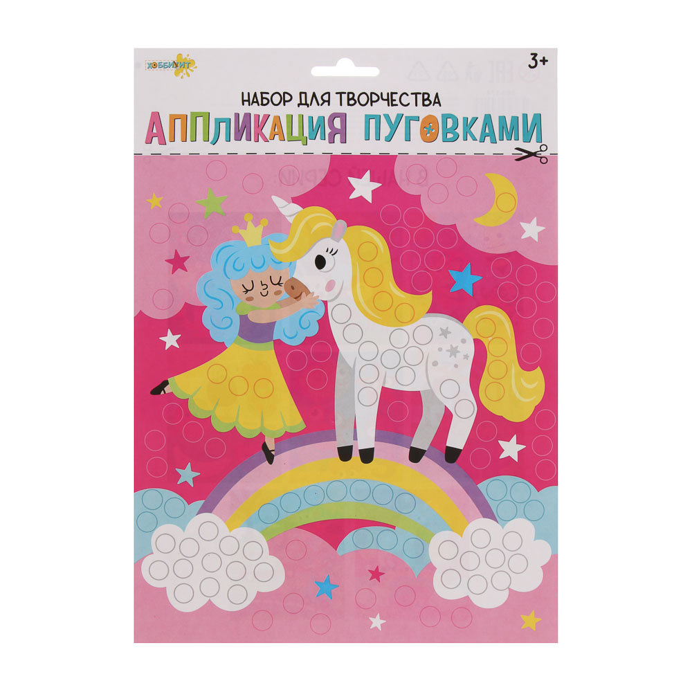 Аппликация пуговками от ХОББИХИТ - это картонная картинка для аппликации и самоклеящиеся пуговки. Пуговки отделяют от основы и приклеивают на картинку. Полезно для творческих занятий с детьми, развивает мелкую моторику рук. Всего 6 дизайнов аппликации - выбирайте картинки, которые нравятся. Подходит для детей от 3 лет.