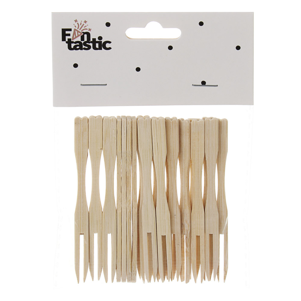 Искусная подача блюд – это то, что всегда впечатляет гостей и делает торжество особенно прекрасным. Декоративные шпажки FNtastic 8,5 см – это удобные шпажки для канапе, особенно для закусок с фруктовыми составляющими. А также отличный вариант для декорирования десертов – маффинов, кексов, капкейков. Они станут настоящей изюминкой в сервировке праздничного стола. Форма - в виде вилок. Материал - бамбук. Количество - 24 шт.