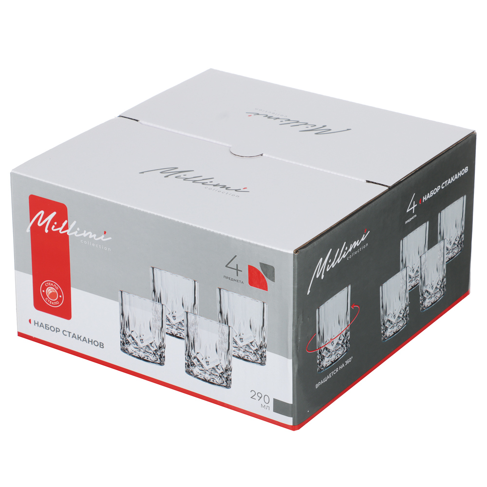 Стильный и практичный набор из 4 стаканов по 290 мл от MILLIMI станет отличным решением для сервировки любых напитков. Изготовлены из прочного прозрачного стекла, которое не впитывает запахи и легко моется. Особенность стаканов — вращающаяся конструкция дна, которая добавляет оригинальности и превращает обычный напиток в эффектную подачу. Идеально подходят для воды, сока, коктейлей или других холодных напитков.