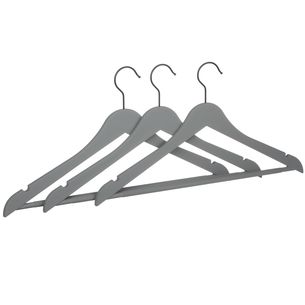 Набор вешалок для одежды VETTA — это идеальное решение для организации пространства в вашем гардеробе. Вешалки изготовлены из прочного пластика с покрытием софт-тач, которое предотвращает соскальзывание одежды. Благодаря своей конструкции они выдерживают даже тяжёлую верхнюю одежду. Размер вешалок 44,5x23x1 см позволяет использовать их для большинства предметов одежды. Серый цвет делает их универсальными и подходящими для любого интерьера. Набор состоит из трёх вешалок, что обеспечивает достаточное количество для ежедневного использования. С набором вешалок VETTA ваша одежда будет аккуратно развешена, а порядок в шкафу обеспечен.