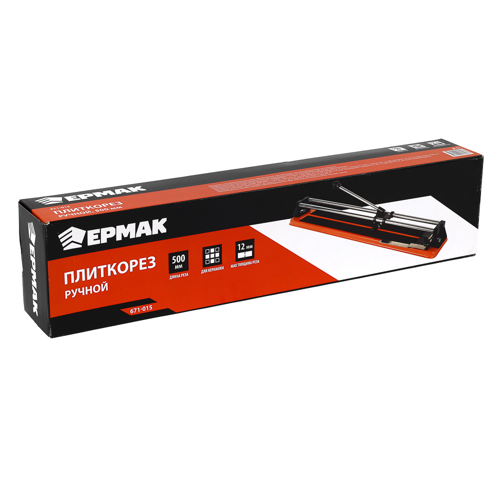 Плиткорезы – это незаменимый инструмент при проведении строительных и ремонтных работ. С их помощью можно без усилий разрезать керамическую плитку, а также другие виды плитки.Для того чтобы провести резку, плиткорезом следует подложить плитку под верхний край реза. Затем нужно плотно прижать нож к плитке и провести по линии реза. Плиткорез об бренда ЕРМАК выполнен в размере 500 мм.