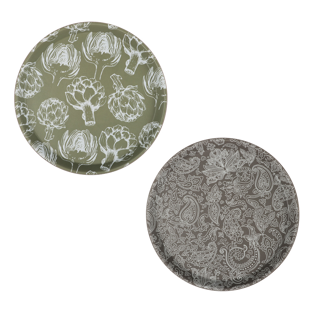 Поднос круглый с антискользящим покрытием "Катания", диаметр 27,5 см – это эстетичный аксессуар для кухни и сервировки стола с привлекательным декоративным рисунком и с матовым антискользящим покрытием, которое значительно снижает риск опрокидывания и соскальзывания посуды во время перемещения. Элегантный поднос может использоваться для подачи завтраков, сервировки фуршетов, а также в качестве тарелки для фруктов. Легко моется, обладает высокой прочностью. Прекрасно вписывается в классический и современный интерьер. 2 стильных дизайна в ассортименте.