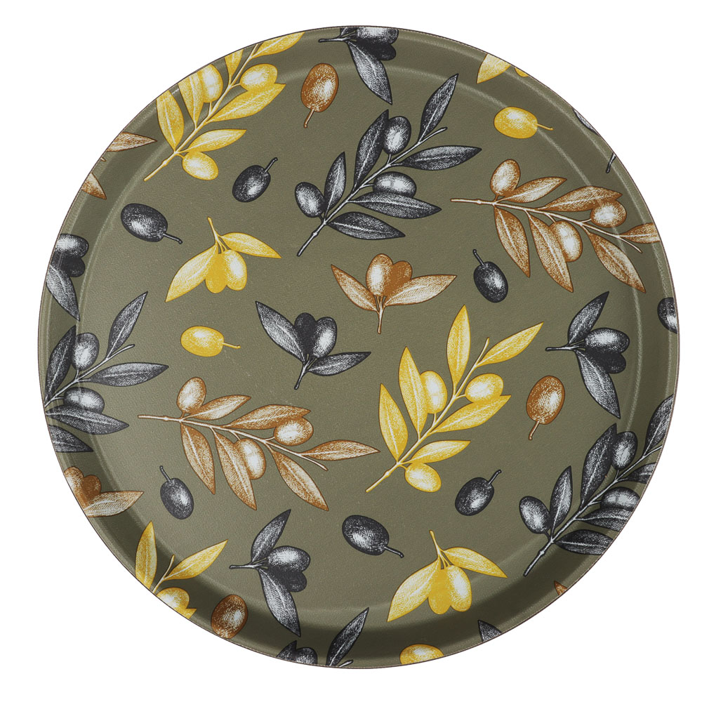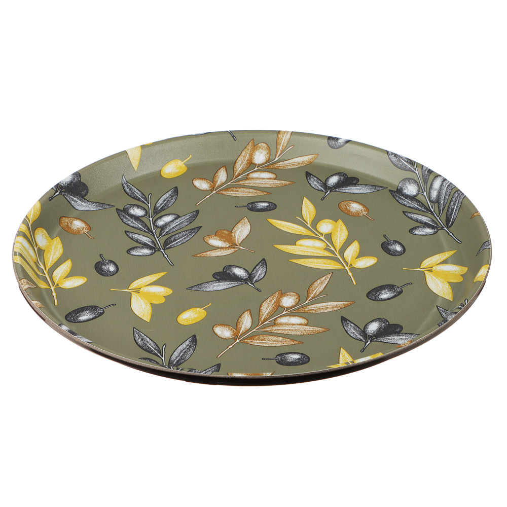 Поднос круглый с антискользящим покрытием "Тоскана", диаметр 35,5 см – это эстетичный аксессуар для кухни и сервировки стола с привлекательным декоративным рисунком и с матовым антискользящим покрытием, которое значительно снижает риск опрокидывания и соскальзывания посуды во время перемещения. Элегантный поднос может использоваться для подачи завтраков, сервировки фуршетов, а также в качестве тарелки для фруктов. Легко моется, обладает высокой прочностью. Прекрасно вписывается в классический и современный интерьер. 2 стильных дизайна в ассортименте.
