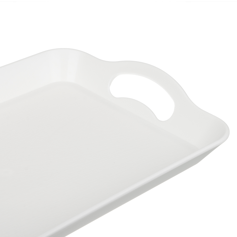 Поднос прямоугольный VETTA размером 36х23х3 см из прочного белого пластика с удобными ручками – это стильный и функциональный аксессуар для современного дома. Позволяет удобно размещать завтраки, бутерброды, закуски или косметические принадлежности, а бортики высотой 3 см предотвращают соскальзывание предметов. Эргономичные ручки обеспечивают комфортный перенос. Поднос абсолютно неприхотлив в уходе – легко моется теплой водой с моющим средством и не требует особых условий хранения. Особенно удобен для сервировки завтраков в постель, организации фуршетов или систематизации косметики в ванной комнате. Благодаря сочетанию практичности, легкости и современного дизайна, этот поднос станет вашим надежным помощником в быту и при приеме гостей.