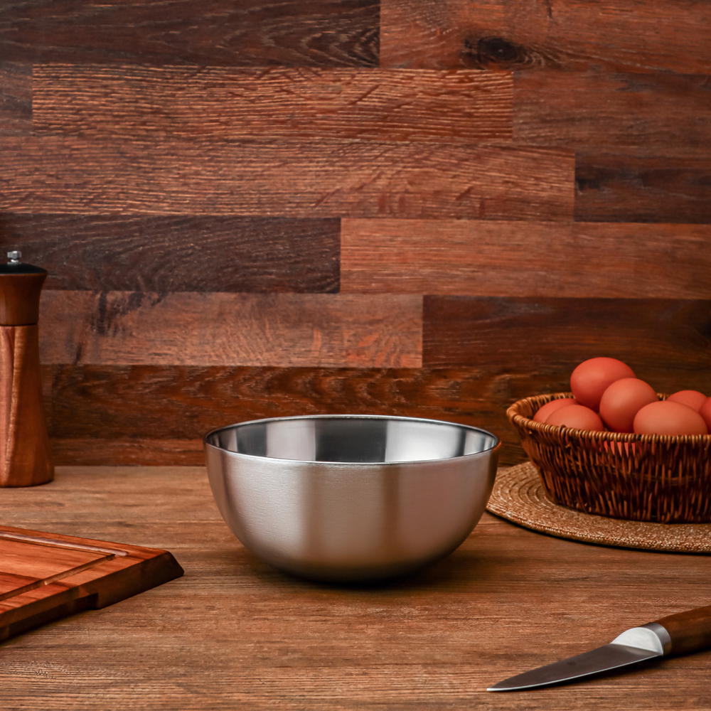 Глубокий салатник SATOSHI из нержавеющей стали прекрасно подходит не только для салатов, но также и для приготовления маринадов, теста, фарша. Имеет легкий вес, устойчивый и хорошо моется. Благодаря своей углубленной форме содержимое легко перемешивается, не вываливаясь за края. Удобная посуда на каждый день, а также для пикника. Диаметр – 19 см.