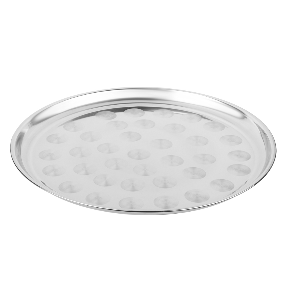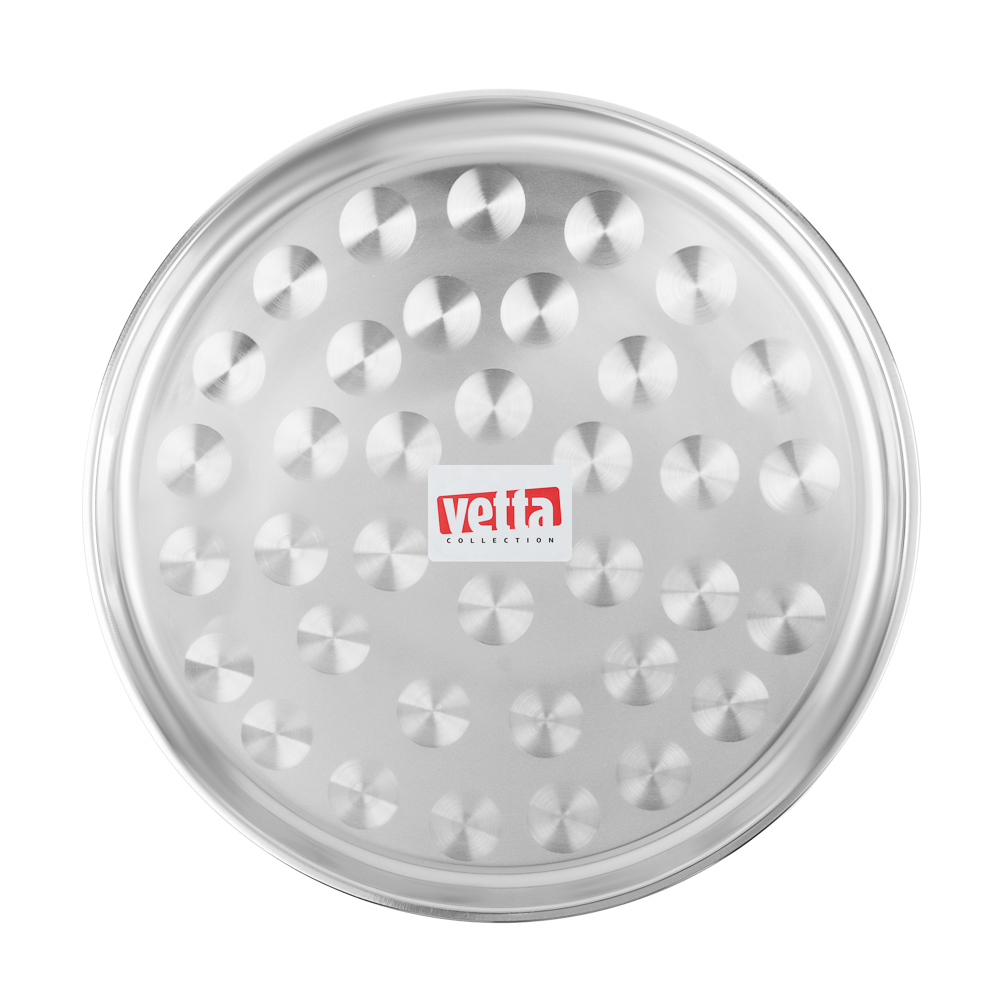 Поднос круглый VETTA диаметром 35 см из нержавеющей стали – это элегантное и практичное решение для стильной сервировки. Изготовленный из высококачественной нержавеющей стали, изделие отличается исключительной прочностью и устойчивостью к коррозии. На нем удобно размещать завтраки, десерты, кофейные или чайные наборы, а также использовать для подачи закусок гостям. Уход очень прост – достаточно протереть его влажной салфеткой или помыть в посудомоечной машине. Универсальный дизайн прекрасно впишется в любой интерьер – от классической кухни до современного минимализма. Поднос станет не только практичным помощником в повседневной жизни, но и стильным аксессуаром, который можно использовать как элемент декора или для создания особой атмосферы при приеме гостей.