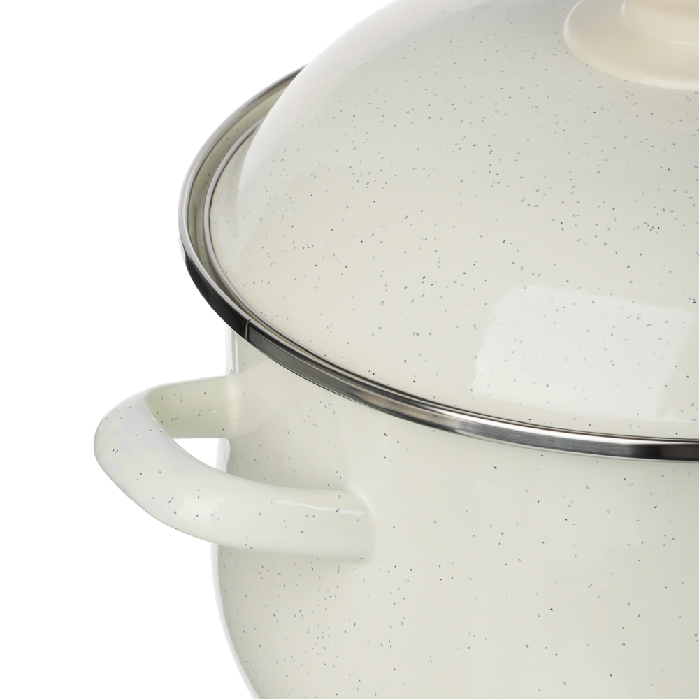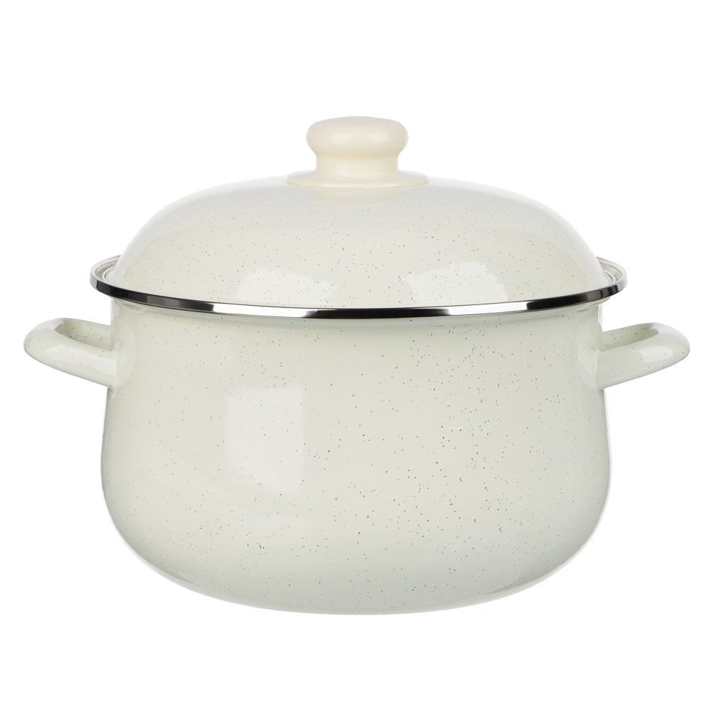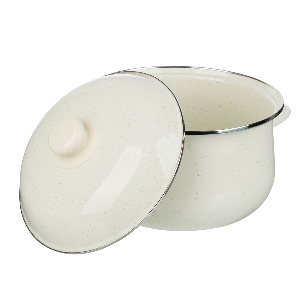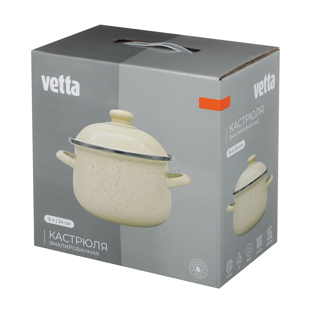 Эмалированная кастрюля VETTA «Айвори», диаметр 24 см, объем 5 л, с крышкой – это вместительная посуда для приготовления блюд для большой семьи. Удобна для варки супов, пельменей, овощей, яиц, компотов и гарниров. Надежное эмалированное покрытие обеспечивает длительный срок службы, легкий уход и сохранение вкуса продуктов, а корпус из нержавеющей стали не подвержен коррозии и деформации. Благородный кремовый оттенок смотрится современно, гармонично дополняя интерьер кухни. Подходит для всех типов плит, включая индукционные.