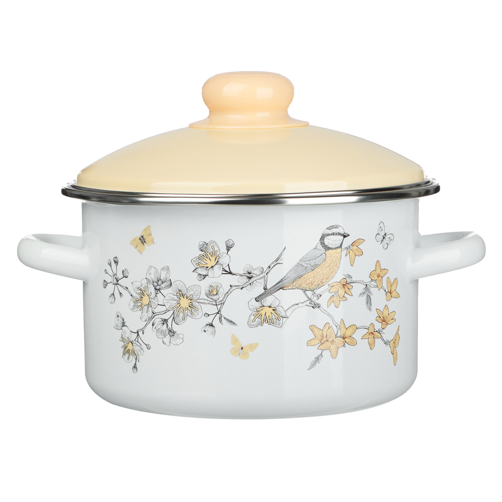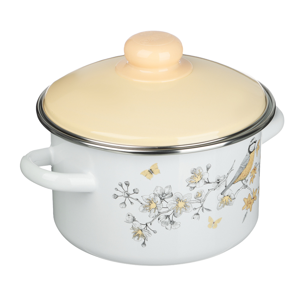 Эмалированная кастрюля Люмен объемом 2 л, с крышкой – это посуда для приготовления первых блюд и компотов, изготовленная из качественной нержавеющей стали с надежным экологичным эмалированным покрытием. Имеет привлекательный дизайн в бежевых и белых тонах, который гармонично сочетается с любой другой посуды и актуально смотрится в интерьере любой кухни. Кастрюля обеспечивает равномерное приготовление блюд, устойчива к деформации при длительном нагреве. Эмаль не искажает вкус продуктов, поэтому посуда подходит для хранения готовой еды. Подходит для всех типов плит, включая индукционные.