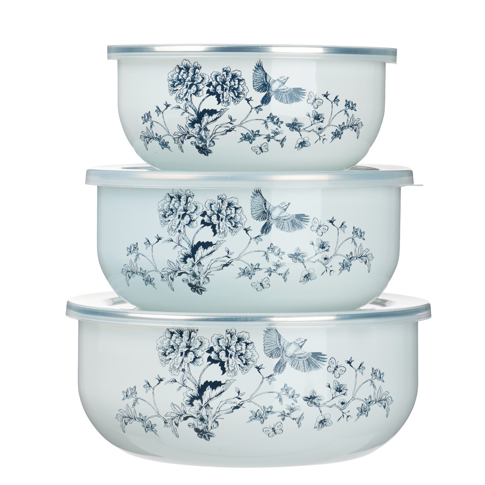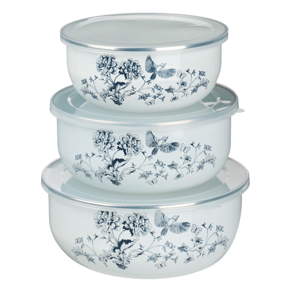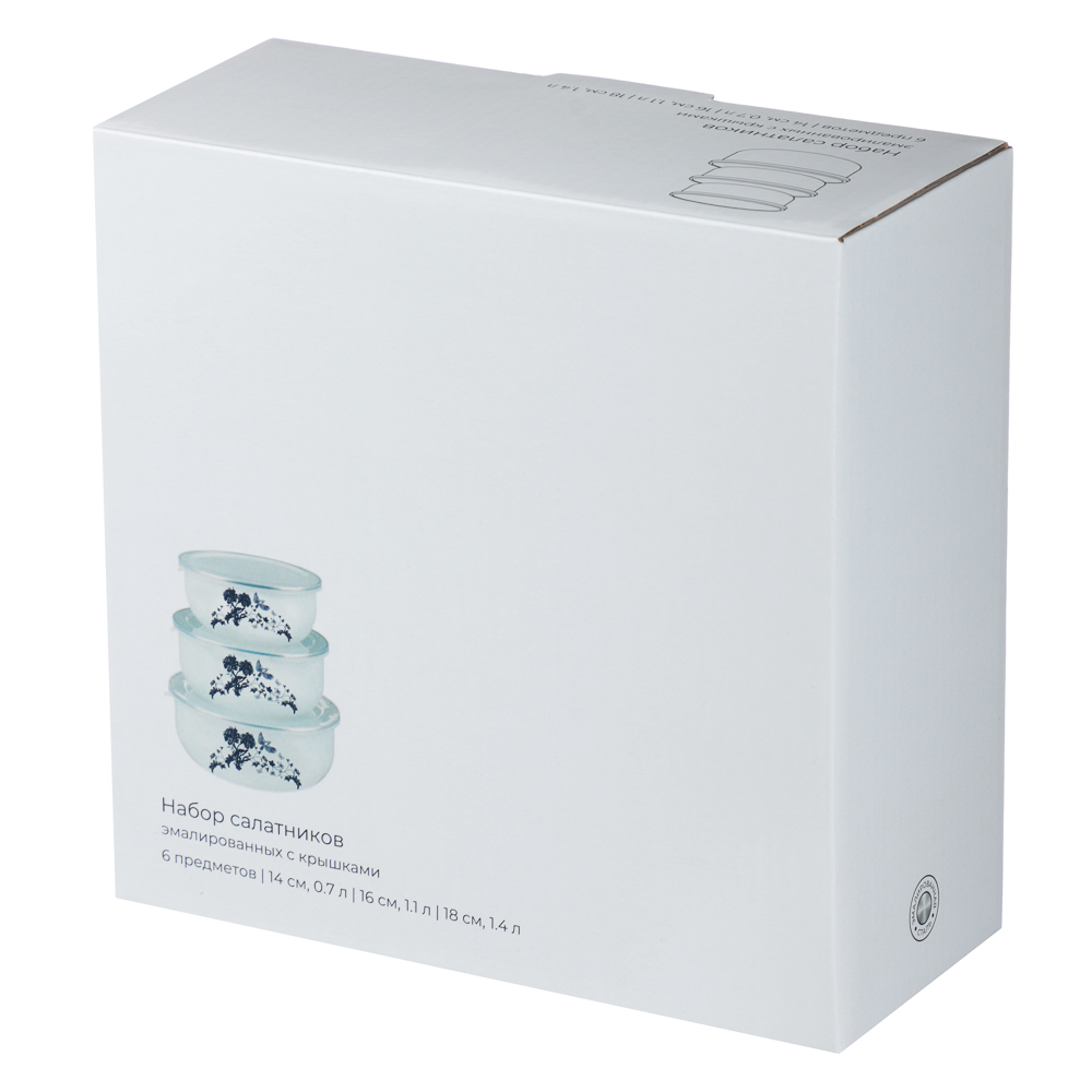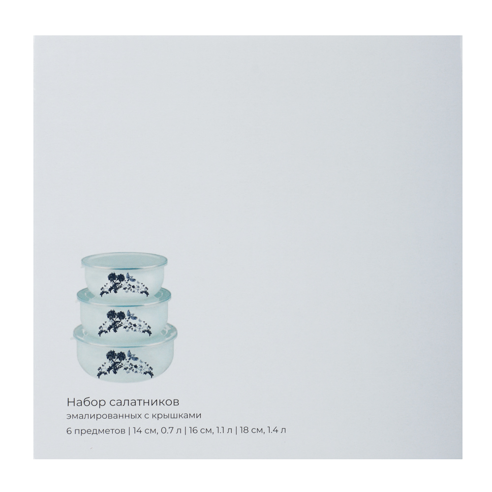 Любите много готовить? Продолжайте в том же духе! Будьте уверены: блюда надолго сохранят свой вкус, ведь за их хранение отвечает набор салатников Vetta из серии "Флорал". Материал не портит вкусовые свойства продуктов, не отдает им свой запах. Благодаря полной герметичности внутрь посуды не попадает мусор и насекомые. К тому же в холодильнике ароматы еды не смешиваются. Возьмите набор на дачу, пикник или в гости. Ничто не просыплется и не разольется в дороге.Особенности:• экологически чистое эмалированное покрытие;• 3 объема в комплекте: 0,7 л с диаметром 14 см, 1,1 л — 16 см, 1,4 л —18 см;• прозрачные крышки позволяют видеть содержание салатников;• нельзя использовать на открытом огне;• запрещен контакт с металлическими вилками и ножами;• допускается мойка в автоматическом режиме.