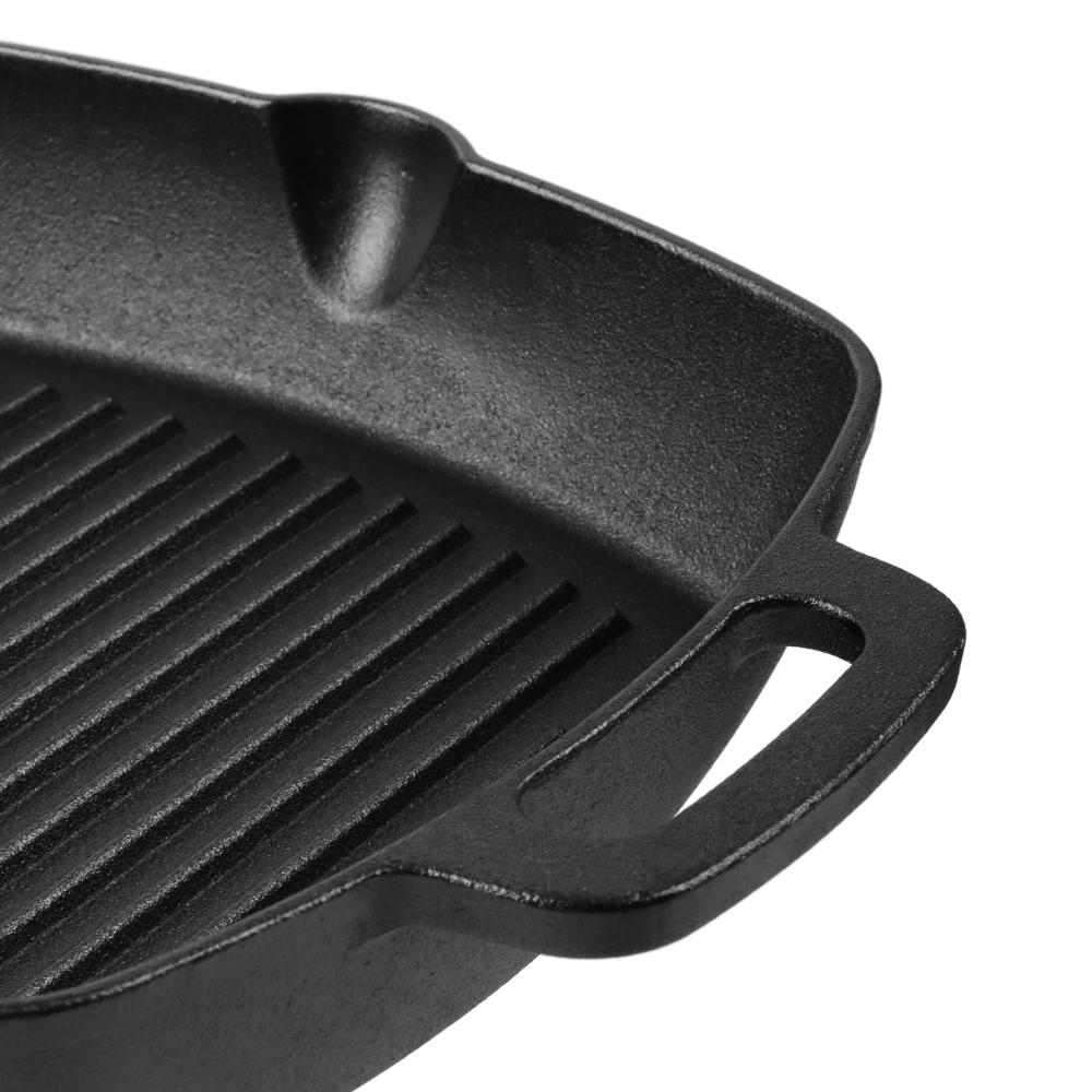 Обожаете барбекю и гриль блюда? Чтобы съесть вкусный обед больше не придется разжигать костер или ехать в ресторан, где готовят на мангале. Чугунная сковорода-гриль Ветта имеет уникальное ребристое дно, напоминающее гриль решетку. Овощи, мясо и рыба получаются нежирными и сочными. Достаточно смазать чугунные ребра парой капель оливкового масла. Продукты соприкасаются с основанием только на 50%. Остальная часть просто томится на пару. 8 причин купить сковороду-гриль из чугуна Vetta:• во время жарки нет дыма и неприятного запаха• долго держит заданную температуру• толстое днище равномерно распределяет тепло• не пересушивает ингредиенты, исключает их прилипание• можно одновременно жарить стейки и овощи• готовит диетическую еду с красивыми золотистыми полосками• цельнолитая конструкция с двумя боковыми ручками• сковородку с функцией гриль можно использовать на всех видах варочных панелей.