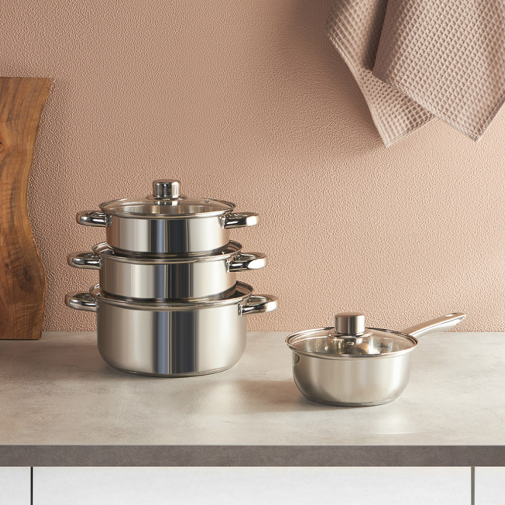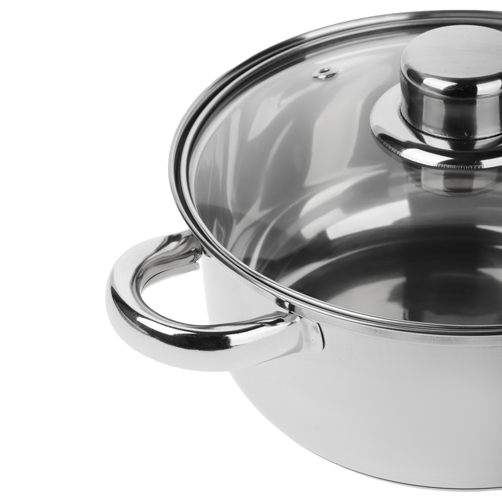 Все еще довольствуетесь приготовлением обедов в старых кастрюлях, где пища медленно варится и пригорает? Обратите внимание на линейку стильной посуды «Джерси». Это универсальная посуда из нержавеющей стали, созданная по последним технологиям. Кастрюли оснащены капсульным дном. Вода закипает быстрее. Ингредиенты не подгорают. Пища готовится равномерно и качественно. Подходит для длительного хранения в холодильнике и тушения блюд в духовке. Преимущества кастрюли из нержавеющей стали серии "Джерси":• многослойное капсульное дно — быстрее готовит, экономит энергию;• крышка из жаропрочного стекла со стальным ободом и отверстием для отвода пара;• объем 1,7 л, размер 18х9 см;• можно мыть в посудомоечной машине.